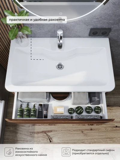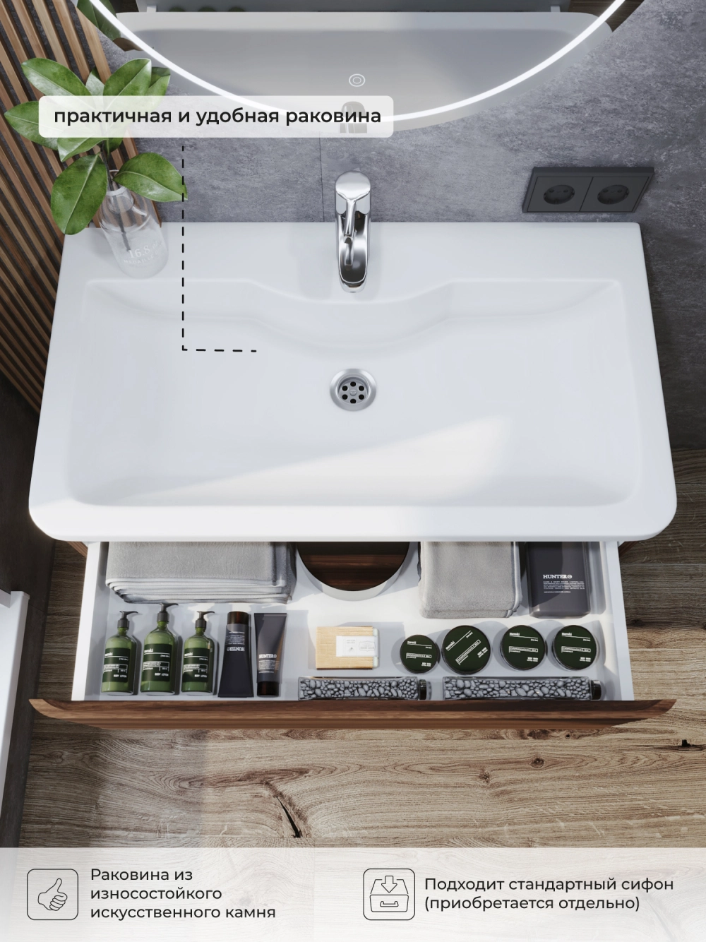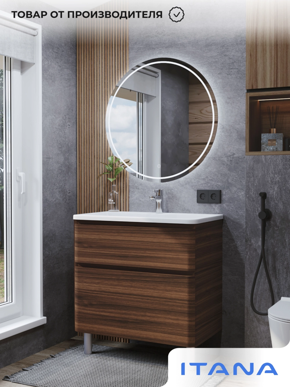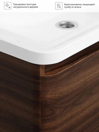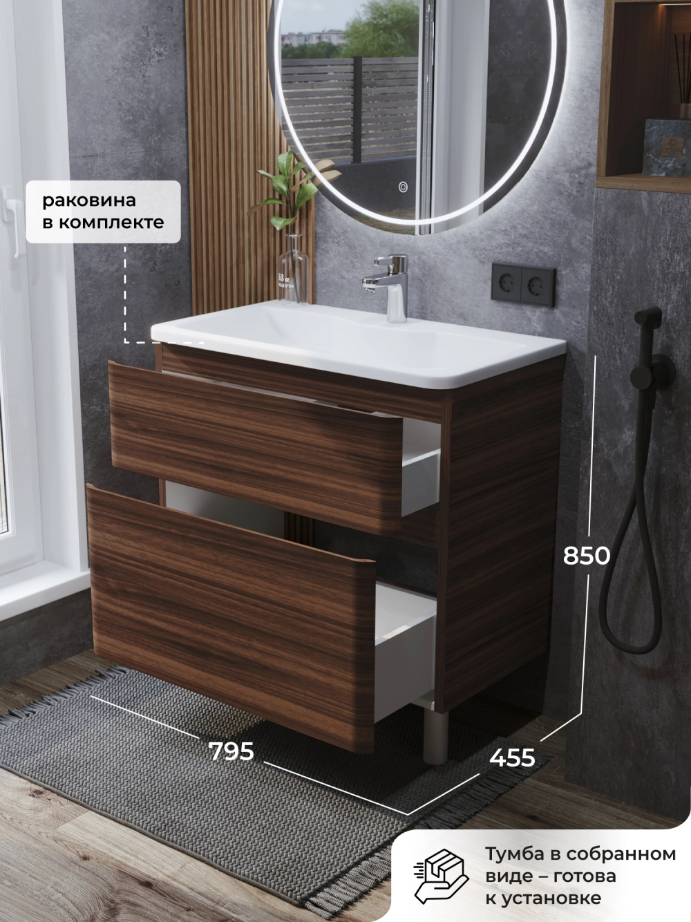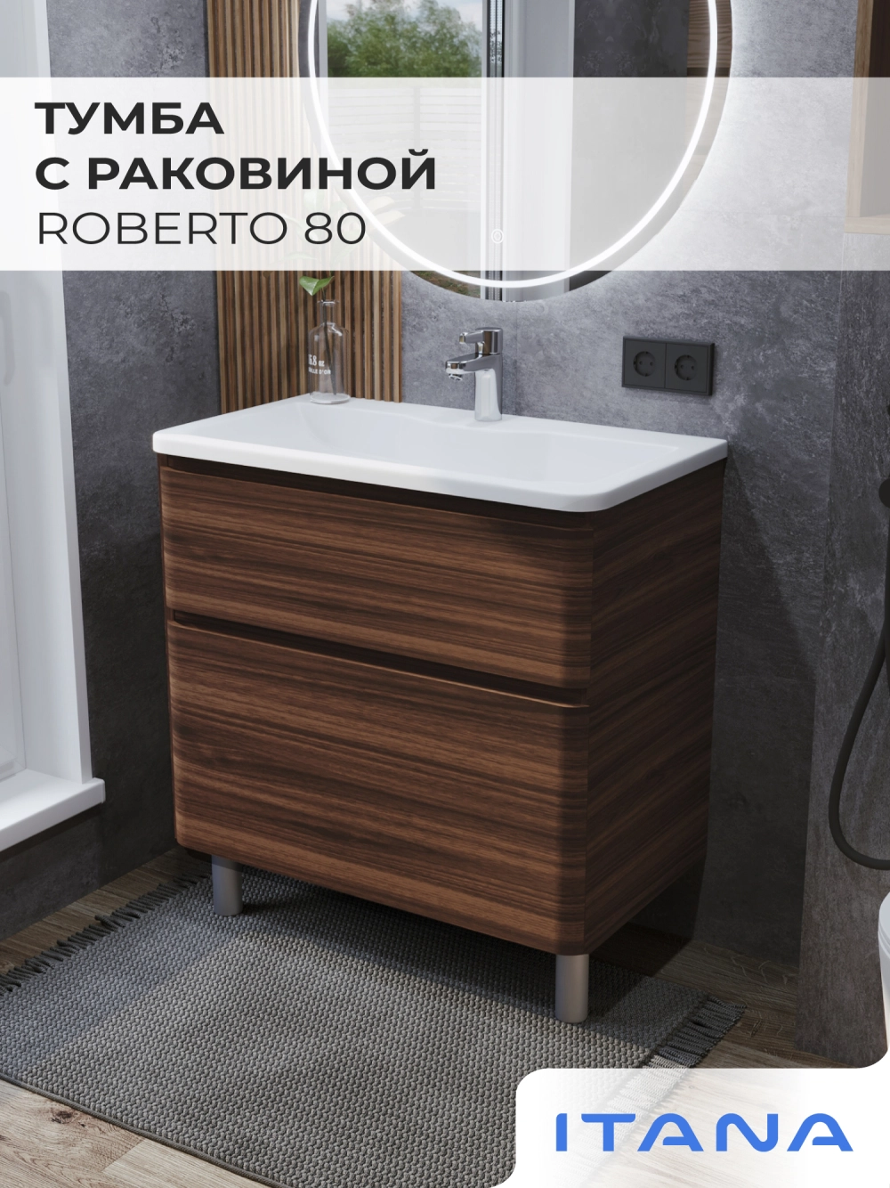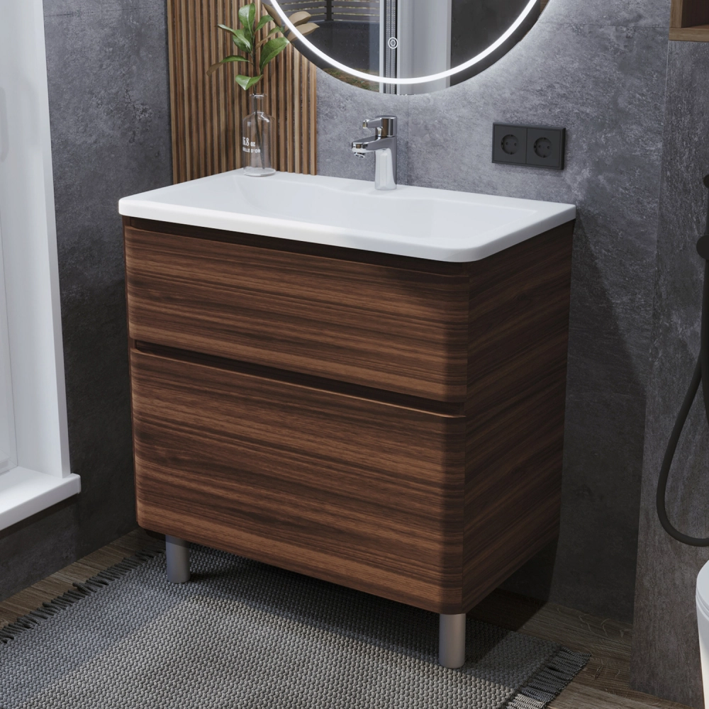 Тумба с раковиной напольная Итана Roberto 80 с выдвижными ящиками Орех Пекан шоколад стронг