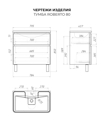 Напольная тумба с раковиной в ванную из коллекции Roberto - это сочетание современной стилистики и богатого функционала. Тумба для ванны изготовлена из прочного МДФ, поэтому выдерживает высокие эксплуатационные нагрузк и обеспечивает дополнительную защиту тумбы с раковиной от влаги и перепадов температуры. Качественная фурнитура с доводчиками обеспечивает легкое открывание и плавное закрывание ящиков. Вырез под сифон универсальный, для любого типа. Благодаря своей конструкции тумба обеспечивает удобный доступ к раковине и позволяет скрыть коммуникации. Тумба с раковиной в ванную оснащена удобным ящиком для хранения, что позволяет разместить всё необходимое под рукой. Ручки интегрированы в фасад, что исключает возможность случайного удара о фурнитуру. Для точного выбора тумбы с раковиной в ванную комнату рекомендуем обратиться к схеме замеров, которая находится на фото в карточке товара, размеры изделия могут отличаться +/-1 см в связи со спецификой производства. Тумба для ванной доставляется в предварительно собранном виде, надежно упакована.