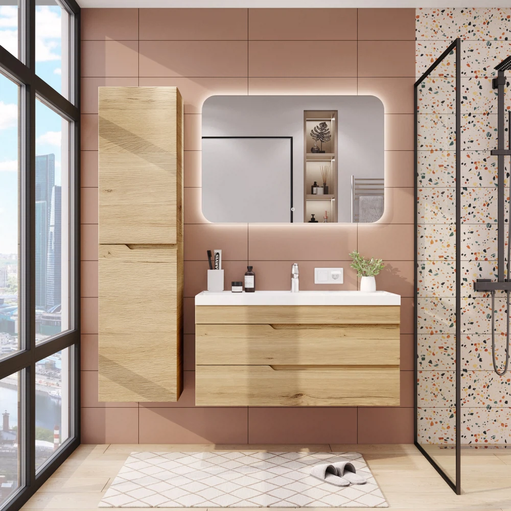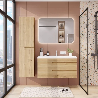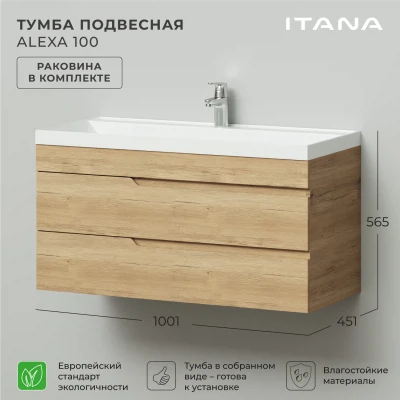 Тумба с раковиной подвесная Итана Alexa 100 с выдвижными ящиками Дуб Мавелла Голд