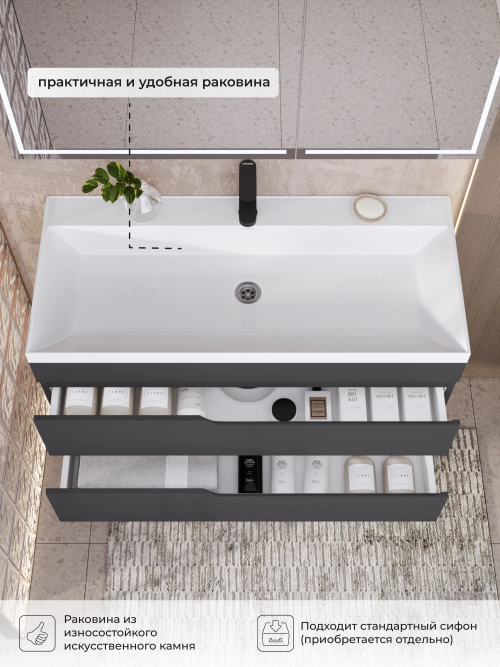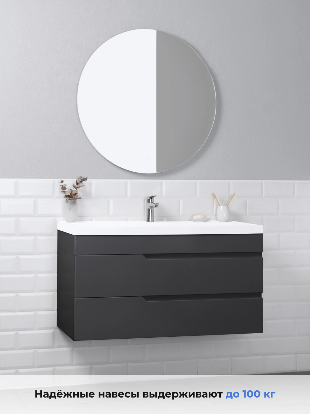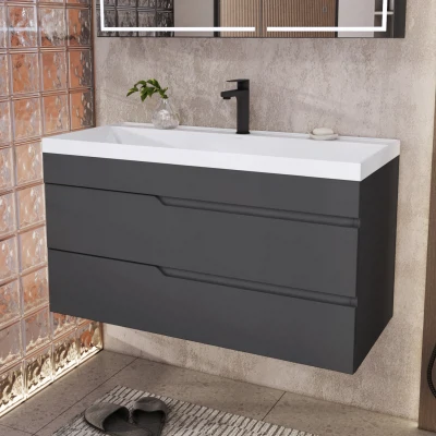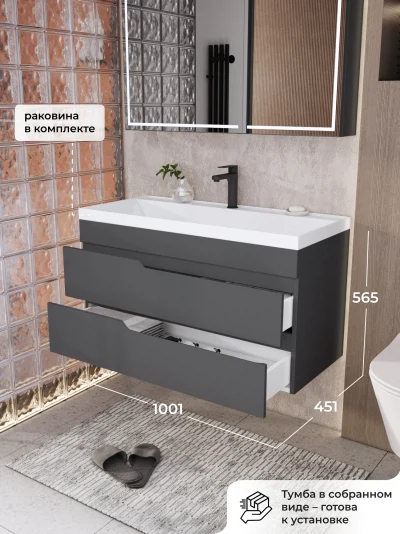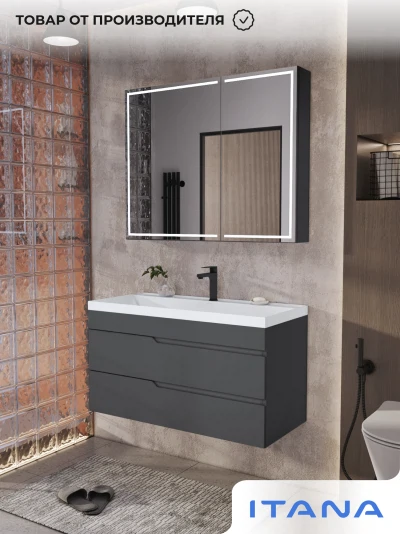 Тумба с раковиной подвесная Итана Alexa 100 с выдвижными ящиками Графит