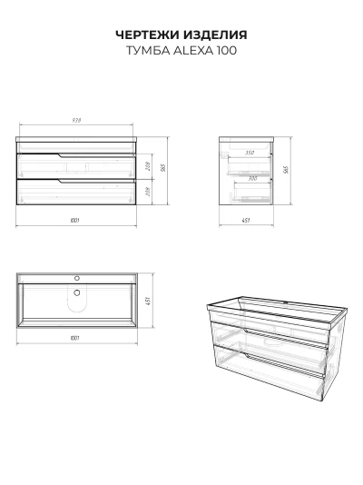 Тумба с раковиной в ванную Итана из коллекции Alexa. Тумба в ванную отличается элегантным дизайном и качественным исполнением, прекрасно сочетая функциональность и эстетическую привлекательность. Размеры подвесной тумбы с раковиной 1001*451*565 - идеальный выбор для ванной комнаты или туалета. Подвесная конструкция тумбы с раковиной позволяет сэкономить место на полу и визуально расширяет пространство. Тумба с раковиной в ванную подвесная выполнена из МФД, что гарантирует долговечность эксплуатации и износостойкость. Качественная фурнитура с доводчиками обеспечивает легкое открывание и плавное закрывание ящиков. Ручки интегрированы в фасад, что исключает возможность случайного удара о фурнитуру. Тумба с раковиной с ящиками, где можно рационально распределить и разместить все необходимые вещи для ванной комнаты. Для точного выбора тумбы рекомендуем обратиться к схеме замеров, которая находится на фото в карточке товара. Размеры изделия могут отличаться +/-1 см в связи со спецификой производства. Подвесная тумба с раковиной приходит в надежной упаковке и в собранном виде.