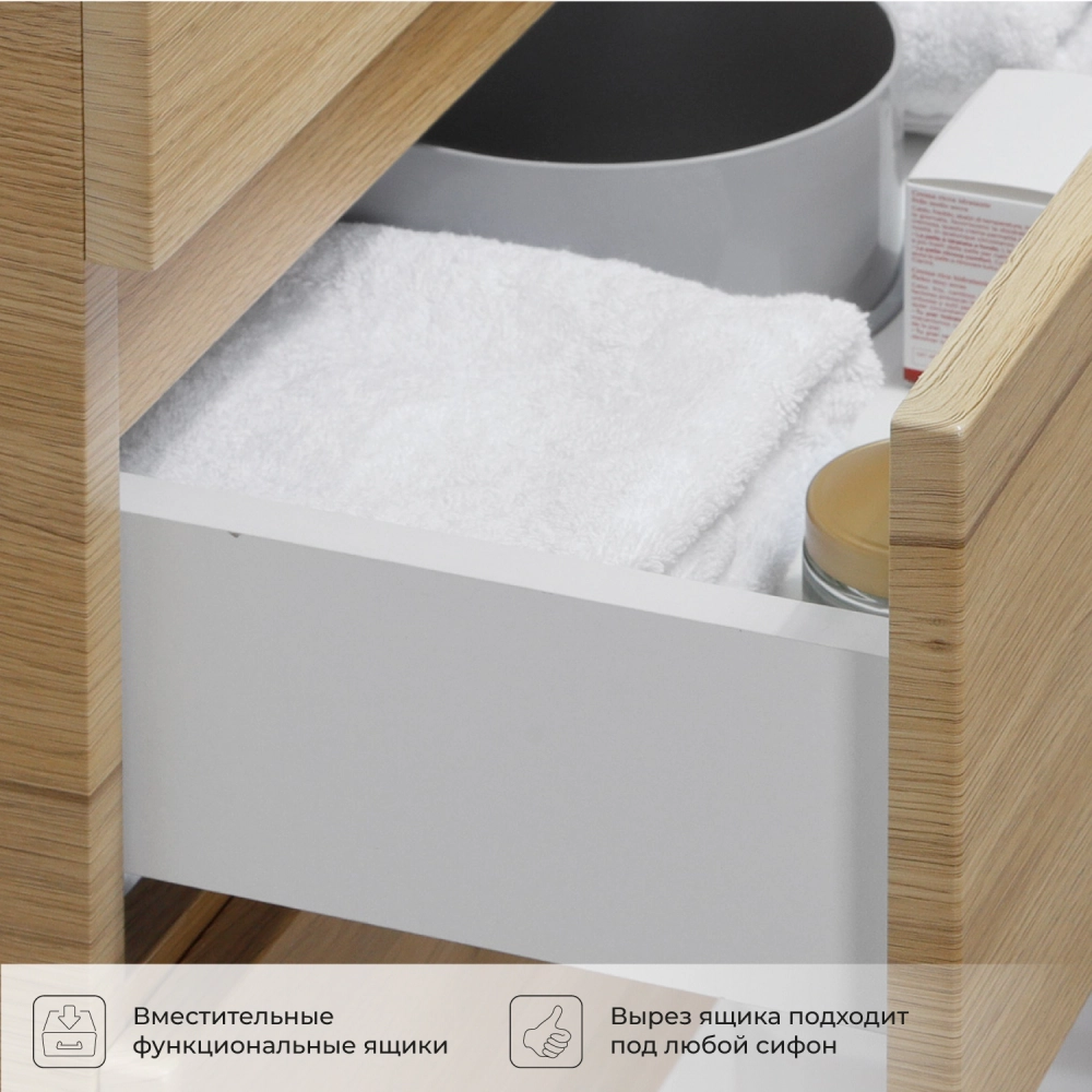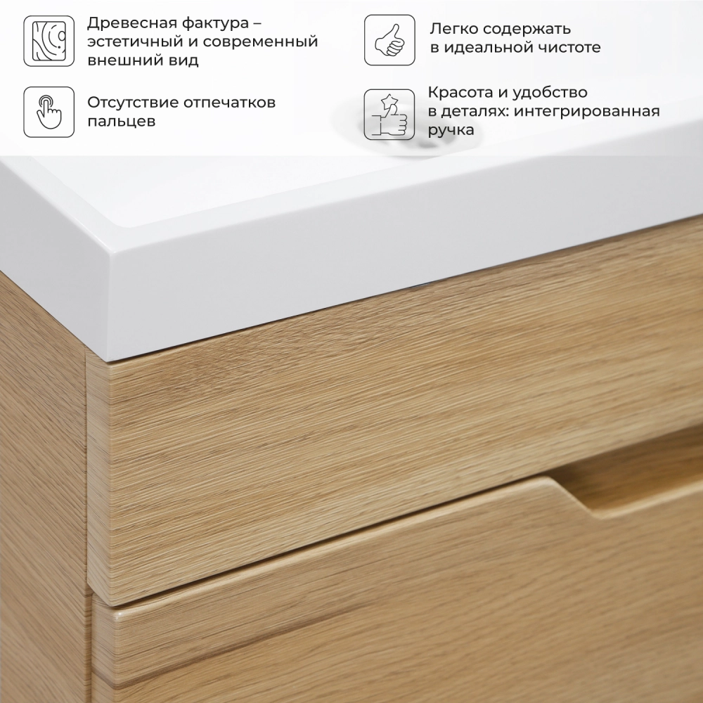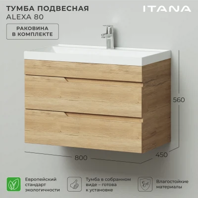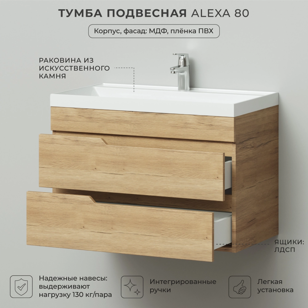 Тумба с раковиной подвесная Итана Alexa 80 с выдвижными ящиками Дуб Мавелла Голд