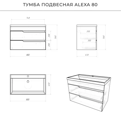 Тумба с раковиной в ванную Итана из коллекции Alexa. Тумба в ванную отличается элегантным дизайном и качественным исполнением, прекрасно сочетая функциональность и эстетическую привлекательность. Размеры подвесной тумбы с раковиной 800*450*560 - идеальный выбор для ванной комнаты или туалета. Подвесная конструкция тумбы с раковиной позволяет сэкономить место на полу и визуально расширяет пространство. Тумба с раковиной в ванную подвесная выполнена из МФД, что гарантирует долговечность эксплуатации и износостойкость. Качественная фурнитура с доводчиками обеспечивает легкое открывание и плавное закрывание ящиков. Ручки интегрированы в фасад, что исключает возможность случайного удара о фурнитуру. Тумба с раковиной с ящиками, где можно рационально распределить и разместить все необходимые вещи для ванной комнаты. Для точного выбора тумбы рекомендуем обратиться к схеме замеров, которая находится на фото в карточке товара. Размеры изделия могут отличаться +/-1 см в связи со спецификой производства. Подвесная тумба с раковиной приходит в надежной упаковке и в собранном виде.