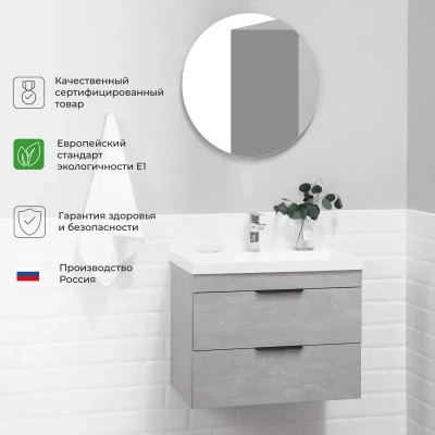 Тумба с раковиной подвесная Итана Alta 70 с выдвижными ящиками под умывальник Clarissa 70 Бетонный Камень