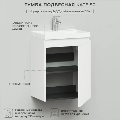 Тумба с раковиной подвесная Итана Kate 50 с распашной дверцей правая Бланж