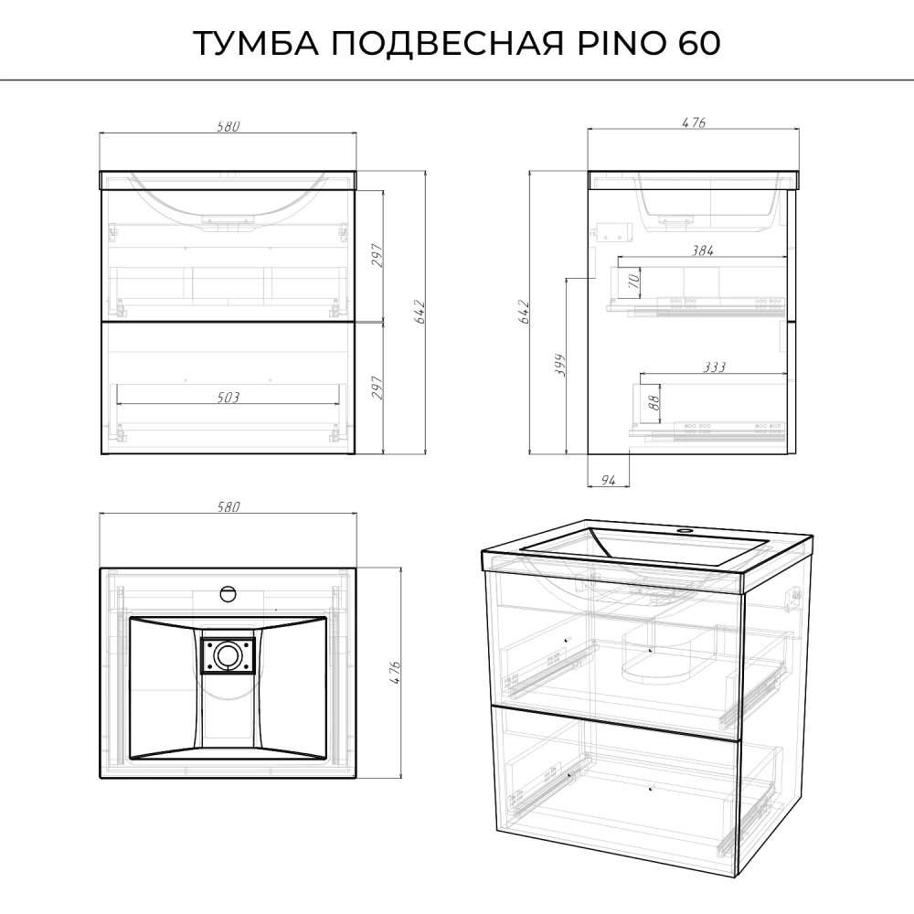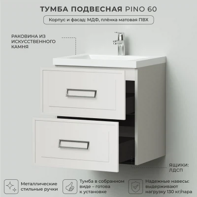 Тумба с раковиной подвесная Итана Pino 60 с выдвижными ящиками Керамик