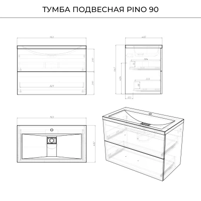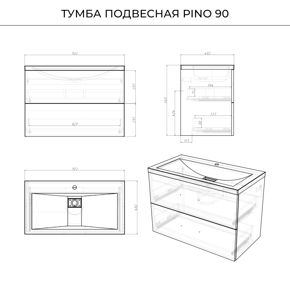 Тумба с раковиной в ванную Итана из коллекции Pino. Размеры подвесной тумбы с раковиной 903х482х640 - идеальный выбор для ванной комнаты или туалета. Подвесная конструкция тумбы с раковиной позволяет сэкономить место на полу и визуально расширяет пространство. Тумба с раковиной в ванную подвесная выполнена из МФД и покрыта пленкой ПВХ, что гарантирует долговечность эксплуатации и износостойкость. Качественная фурнитура с доводчиками обеспечивает легкое открывание и плавное закрывание ящиков. Тумба с раковиной с двумя ящиками, где можно рационально распределить и разместить все необходимые вещи для ванной комнаты. Для точного выбора тумбы рекомендуем обратиться к схеме замеров, которая находится на фото в карточке товара. Размеры изделия могут отличаться +/-1 см в связи со спецификой производства. Подвесная тумба с раковиной приходит в надежной упаковке и в собранном виде.