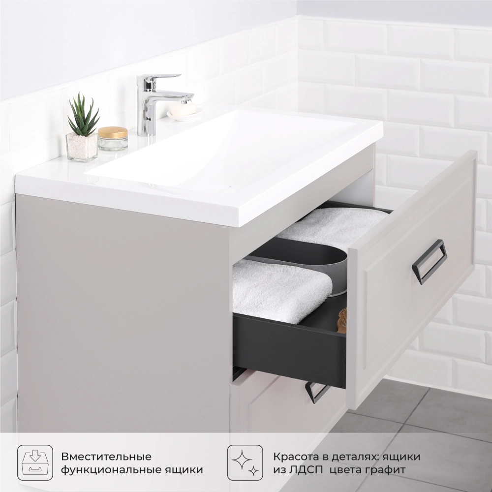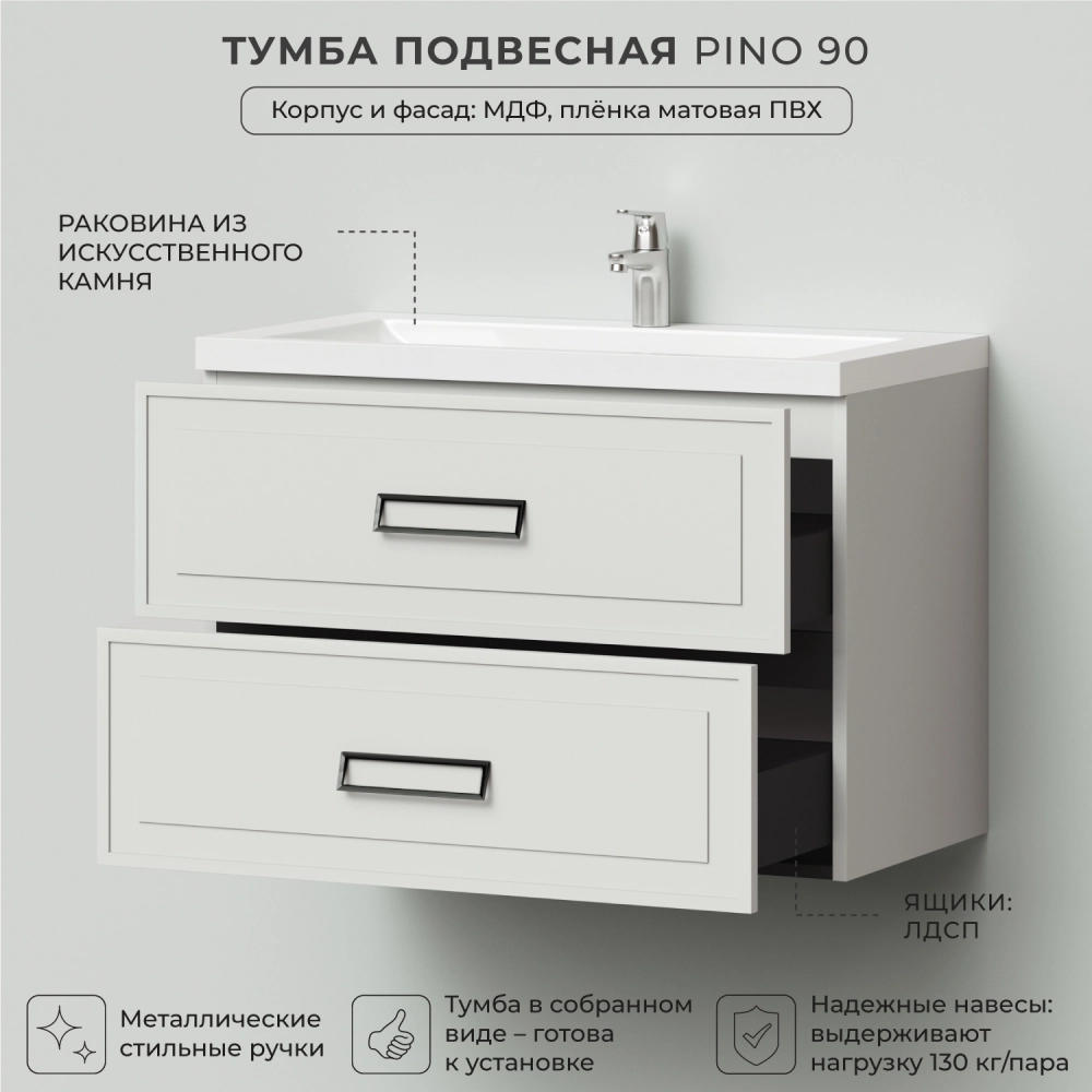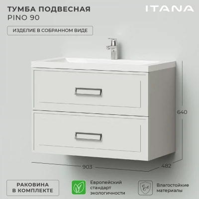 Тумба с раковиной подвесная Итана Pino 90 с выдвижными ящиками Керамик