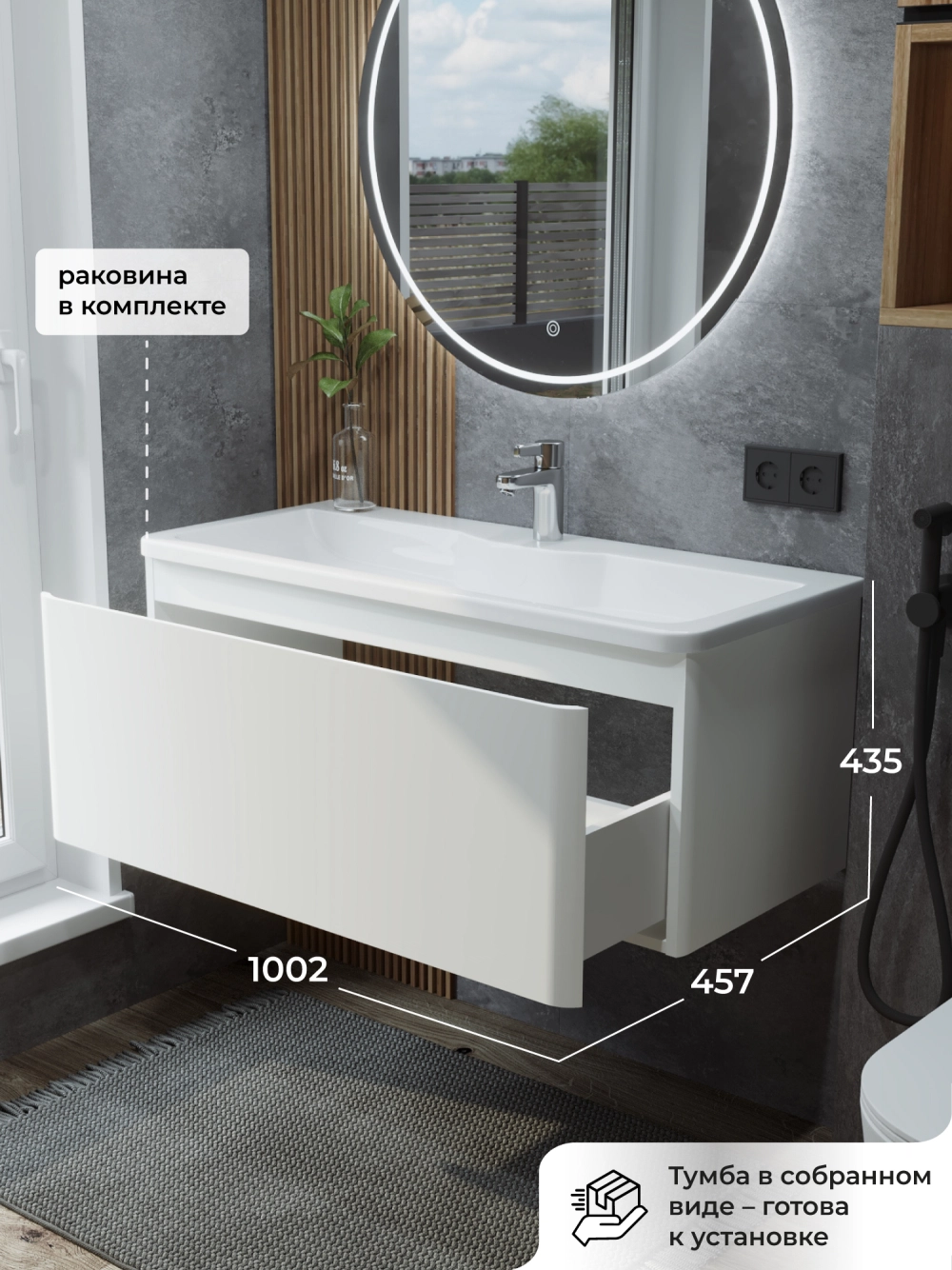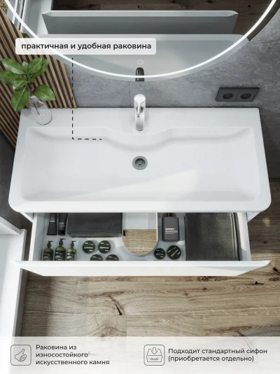 Тумба с раковиной подвесная Итана Roberto 100 с выдвижным ящиком Белый глянец