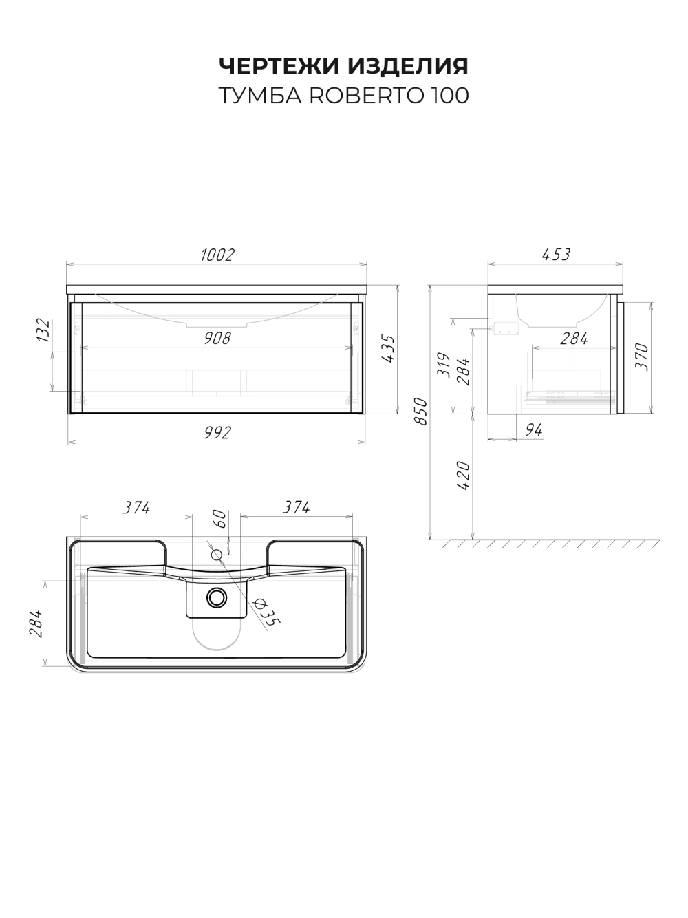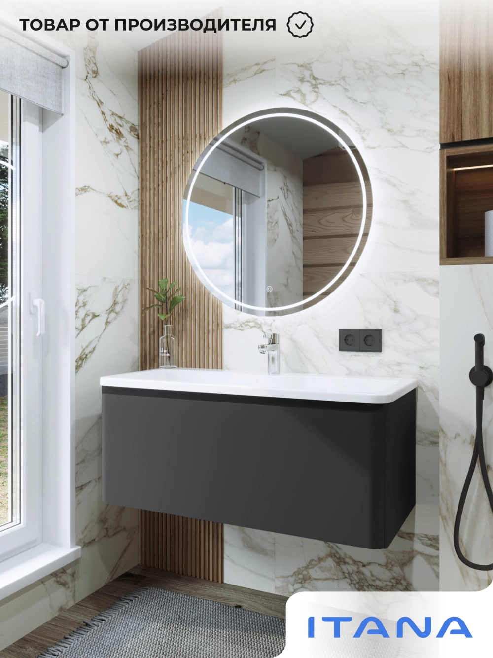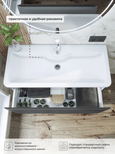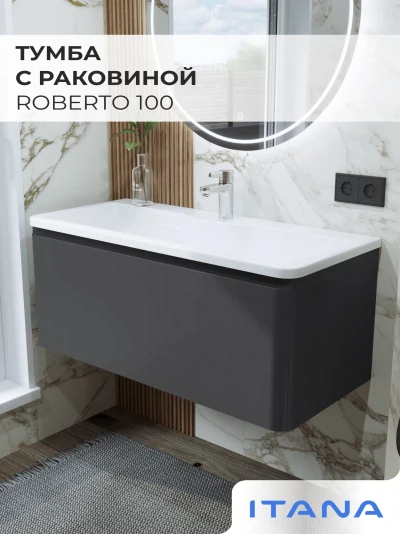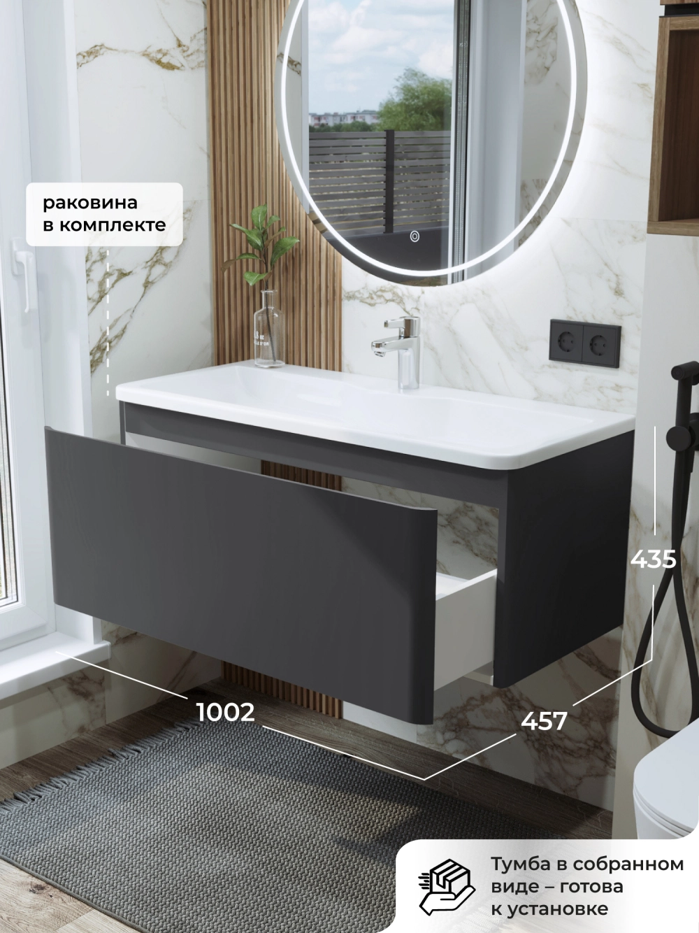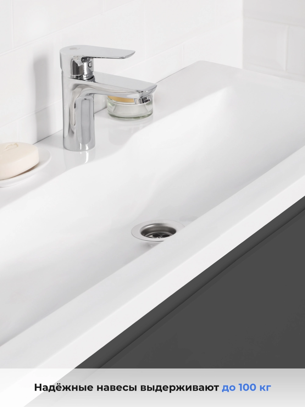 Тумба с раковиной подвесная Итана Roberto 100 с выдвижным ящиком подвесная Графит