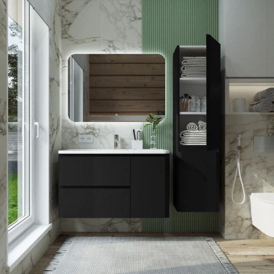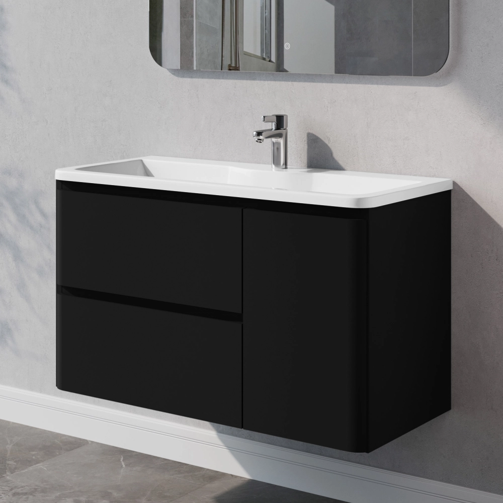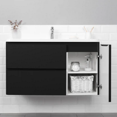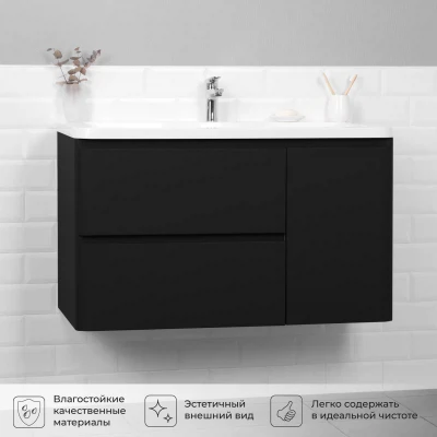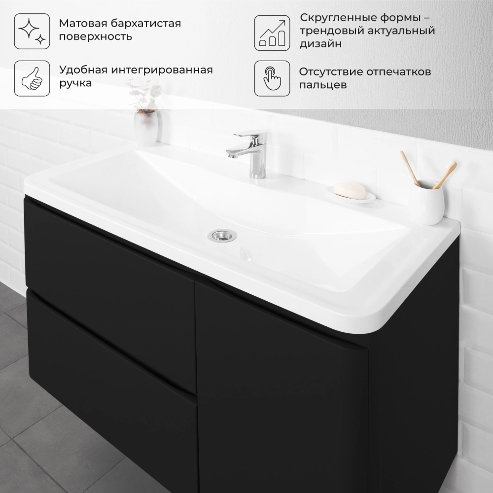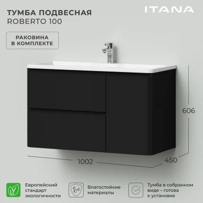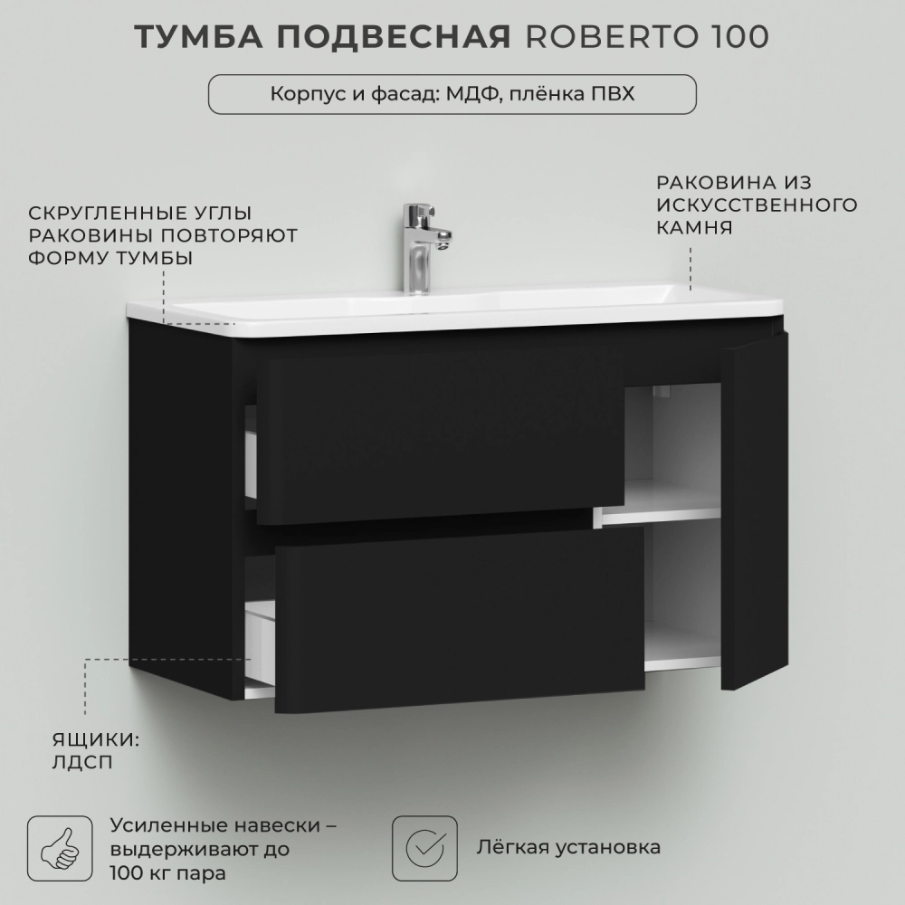 Тумба с раковиной подвесная Итана Roberto 100 с выдвижными ящиками Черный софт