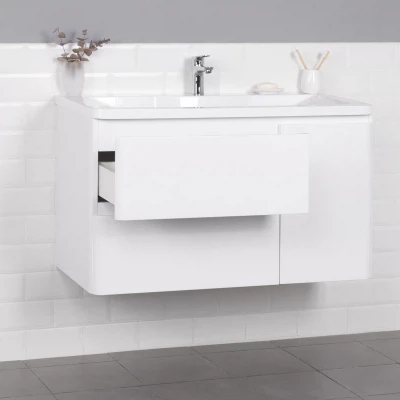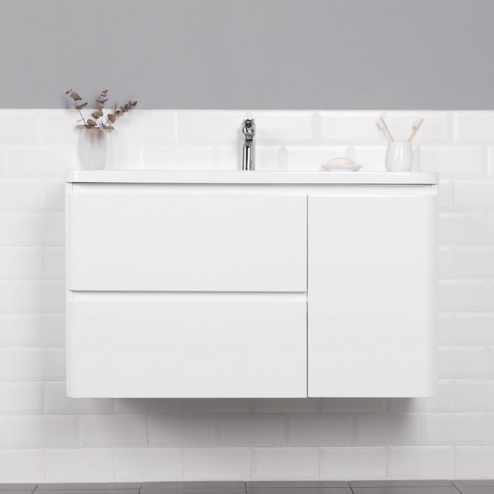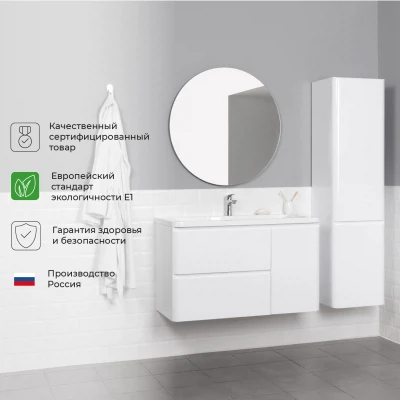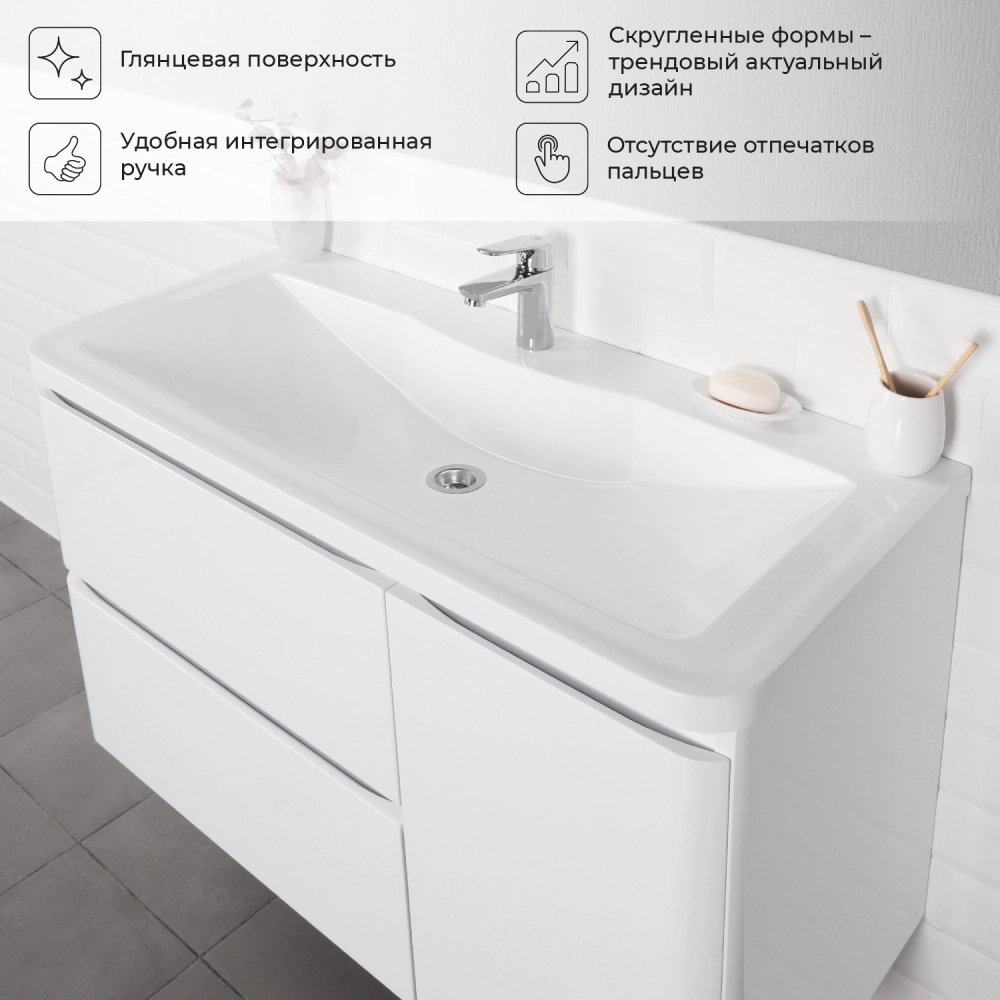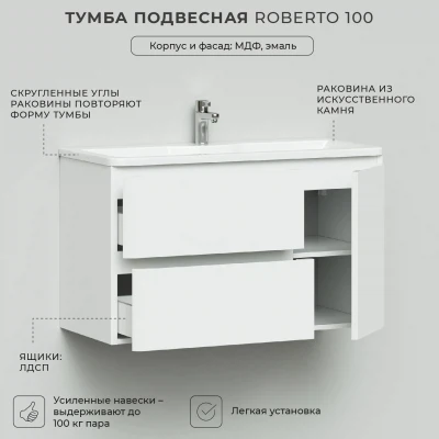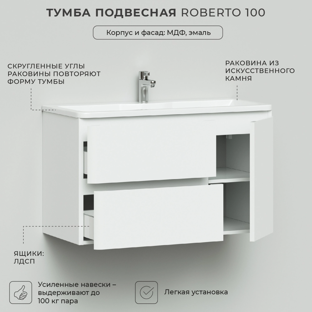 Тумба с раковиной подвесная Итана Roberto 100 с выдвижными ящиками Эмаль Белый Глянец