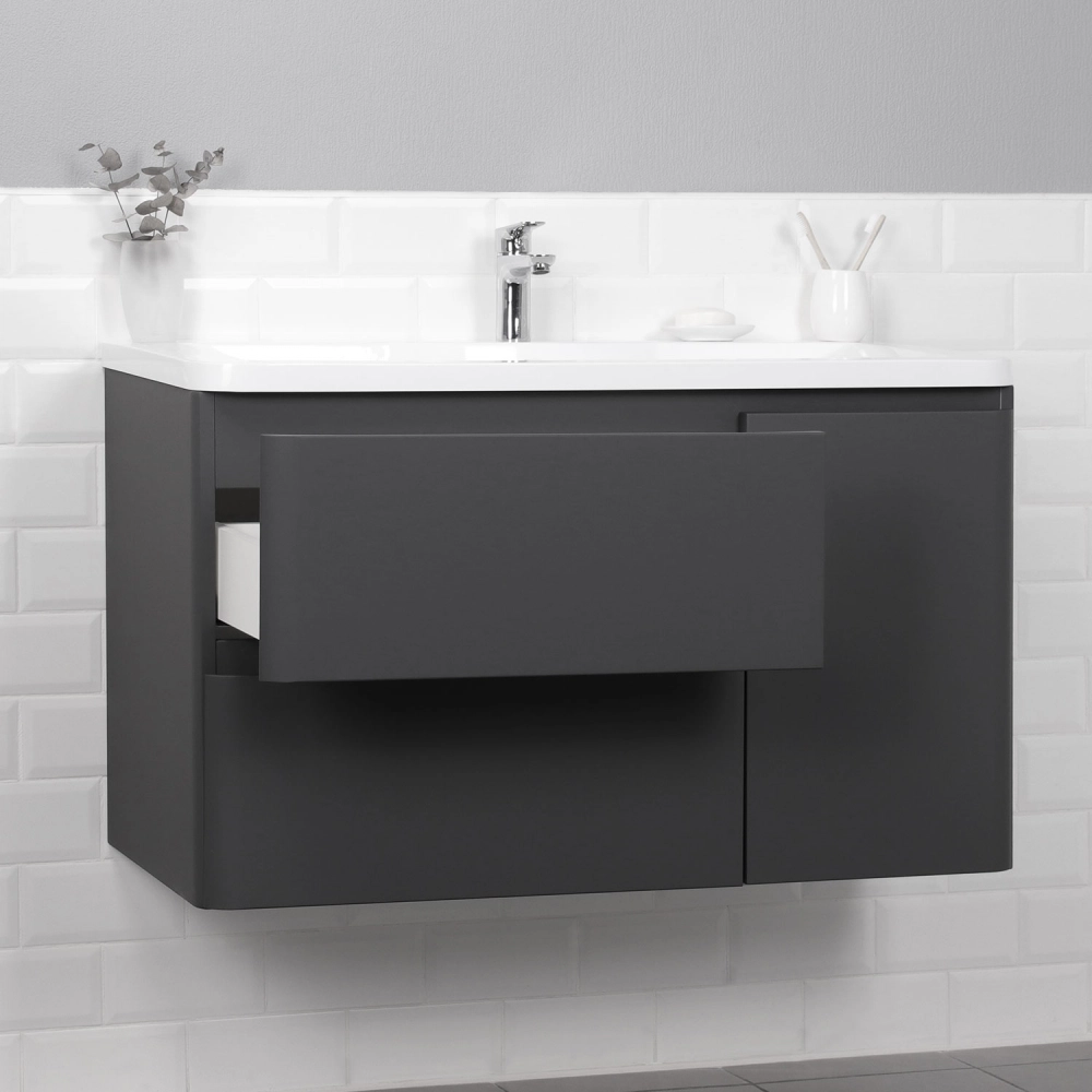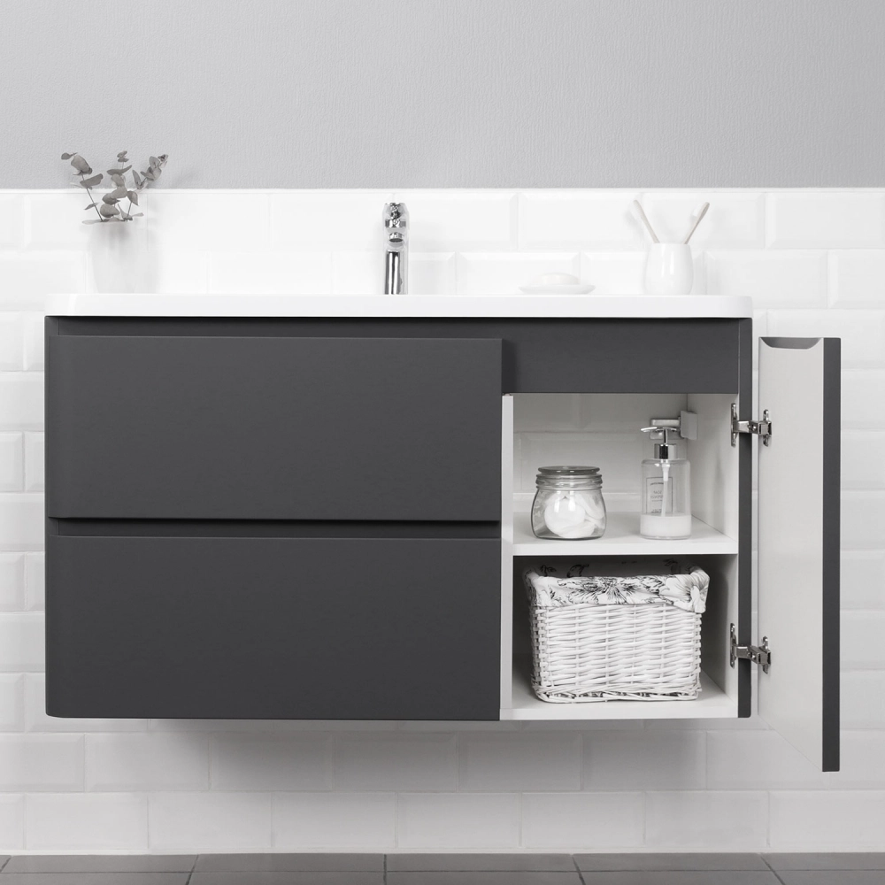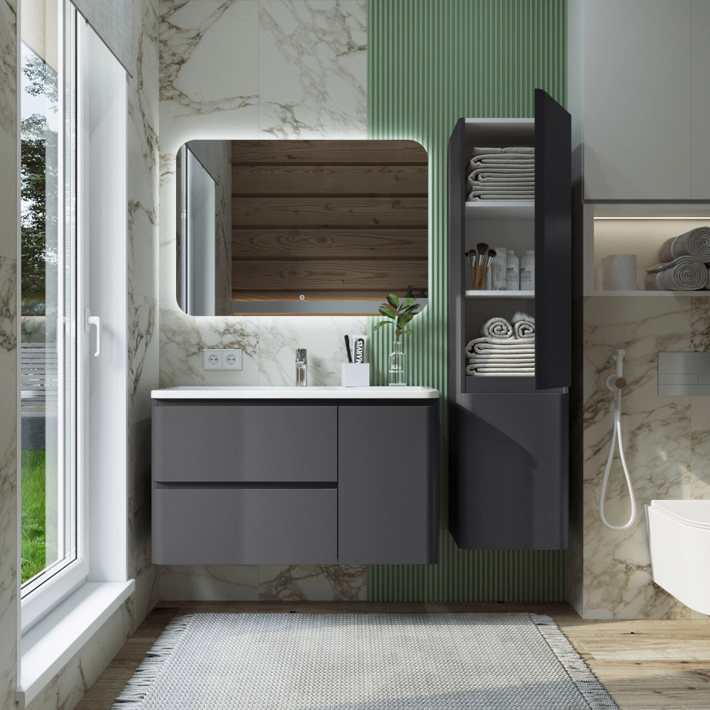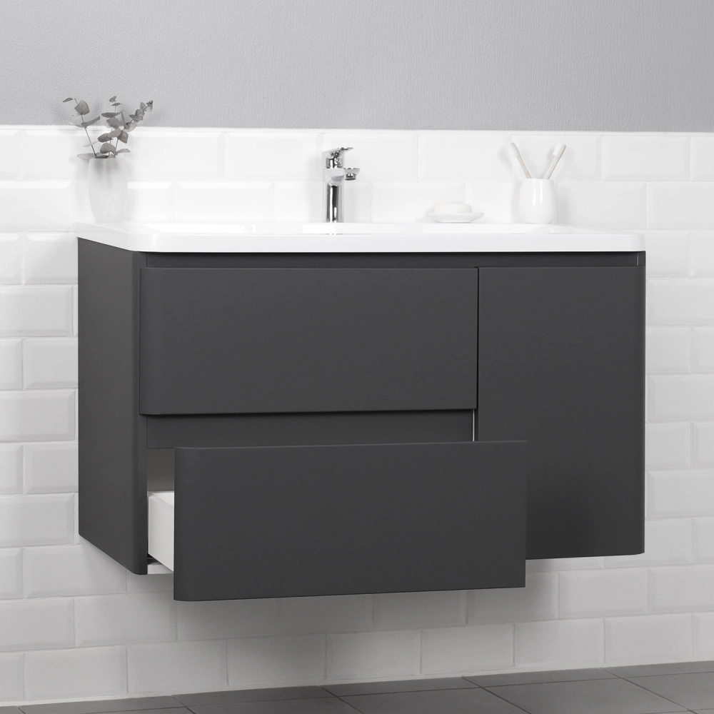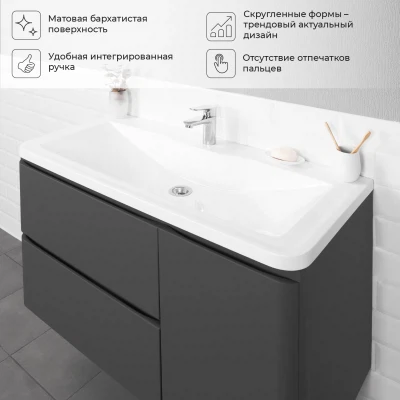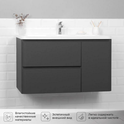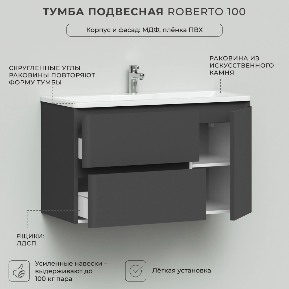 Тумба с раковиной подвесная Итана Roberto 100 с выдвижными ящиками Графит