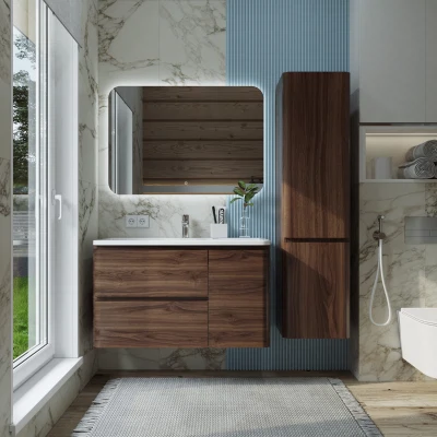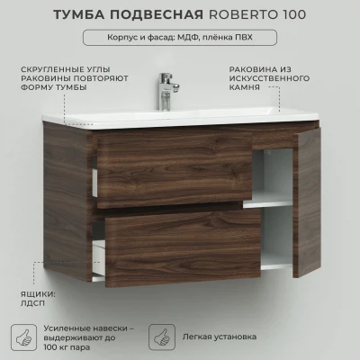Тумба с раковиной подвесная Итана Roberto 100 с выдвижными ящиками Орех Пекан шоколад стронг