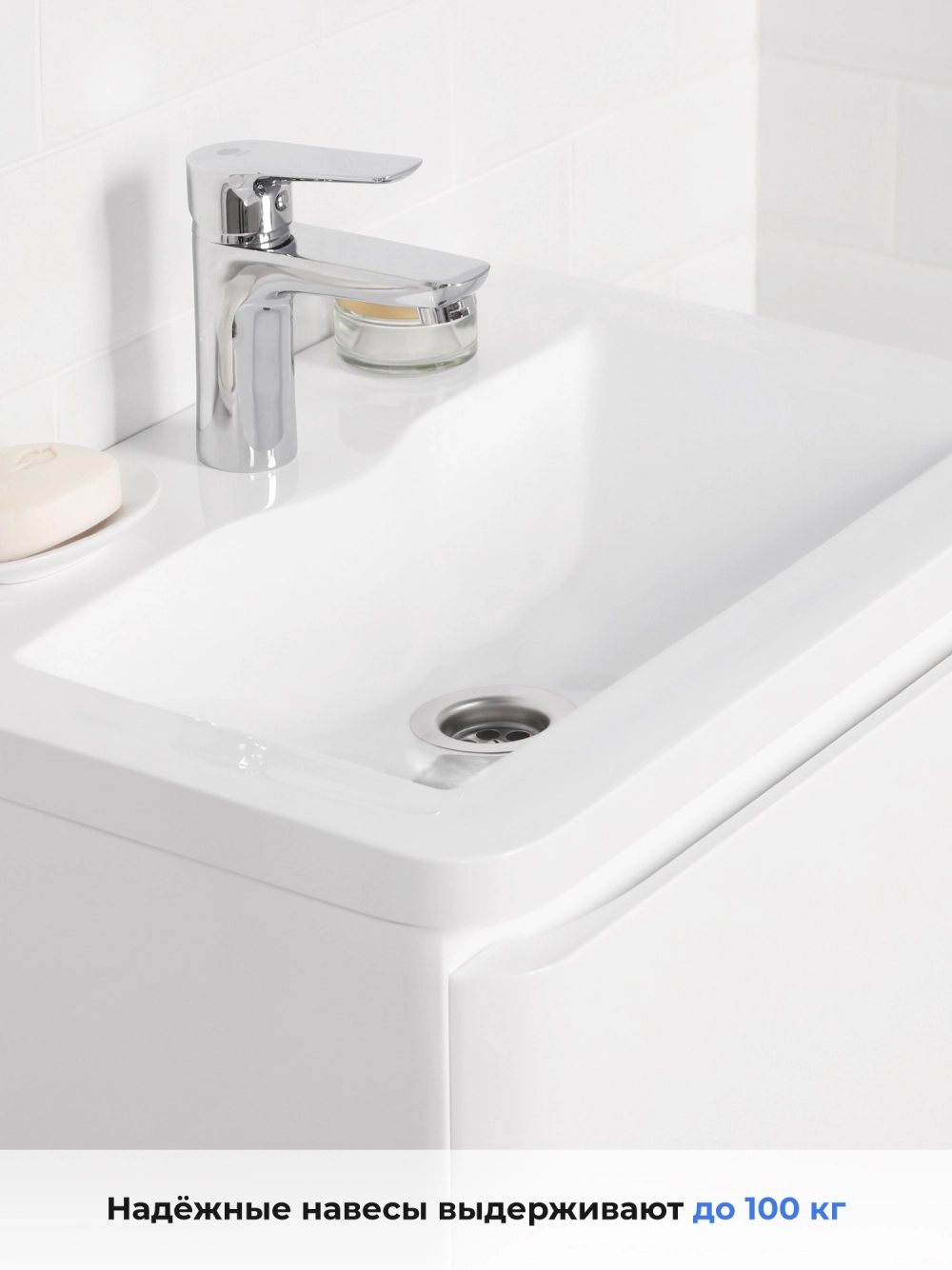 Подвесная тумба с раковиной в ванную из коллекции Roberto - это сочетание современной стилистики и богатого функционала. Тумба для ванны изготовлена из прочного МДФ, поэтому выдерживает высокие эксплуатационные нагрузки. Корпус и фасады тумбы для ванной покрыты пленкой, что обеспечивает дополнительную защиту тумбы с раковиной от влаги и перепадов температуры. Качественная фурнитура с доводчиками обеспечивает легкое открывание и плавное закрывание ящиков. Вырез под сифон универсальный, для любого типа. Благодаря своей конструкции тумба обеспечивает удобный доступ к раковине и позволяет скрыть коммуникации. Тумба с раковиной в ванную оснащена удобным ящиком для хранения, что позволяет разместить всё необходимое под рукой. Ручки интегрированы в фасад, что исключает возможность случайного удара о фурнитуру. Для точного выбора тумбы с раковиной в ванную комнату рекомендуем обратиться к схеме замеров, которая находится на фото в карточке товара, размеры изделия могут отличаться +/-1 см в связи со спецификой производства. Тумба для ванной доставляется в предварительно собранном виде, надежно упакована.