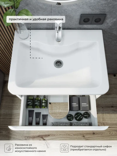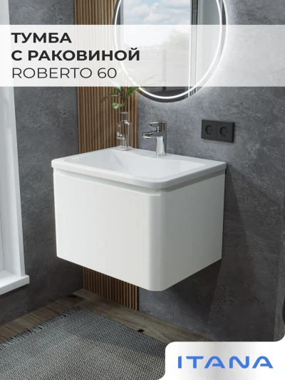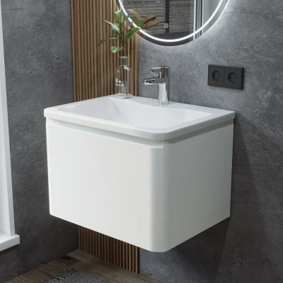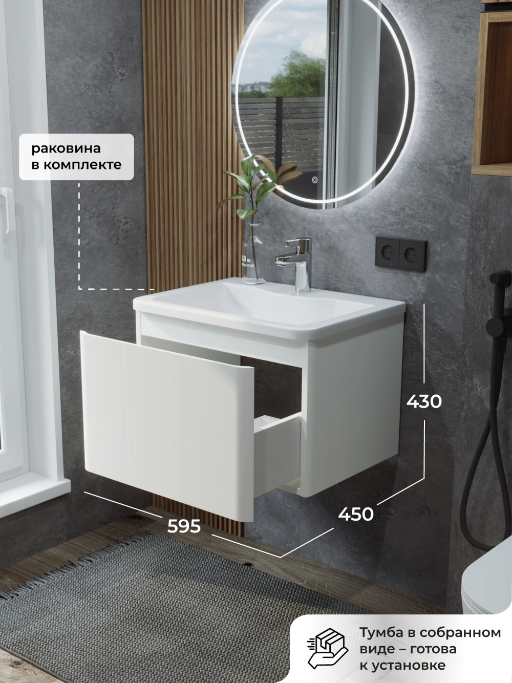 Тумба с раковиной подвесная Итана Roberto 60 с выдвижным ящиком Белый глянец