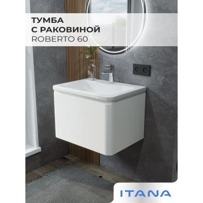 Тумба с раковиной подвесная Итана Roberto 60 с выдвижным ящиком Белый глянец