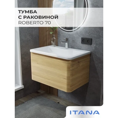 Тумба с раковиной подвесная Итана Roberto 70 с выдвижным ящиком Дуб Мавелла Голд