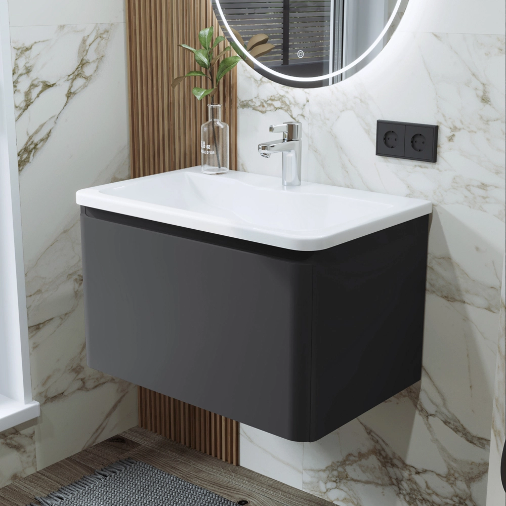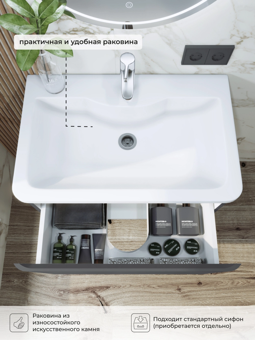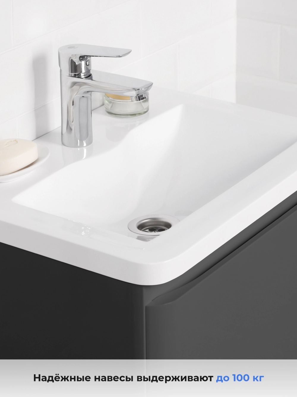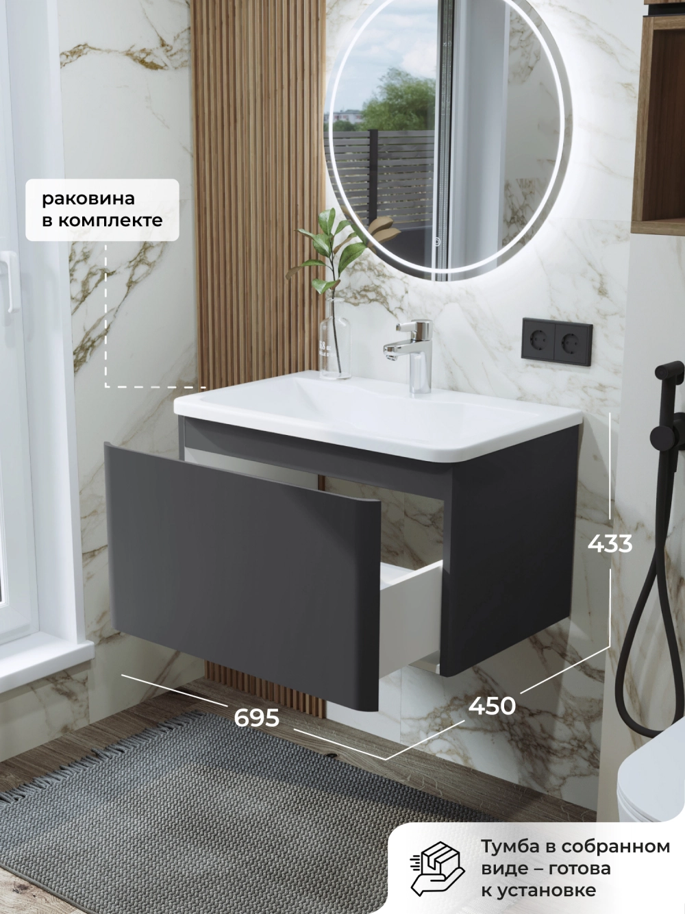 Тумба с раковиной подвесная Итана Roberto 70 с выдвижным ящиком Графит