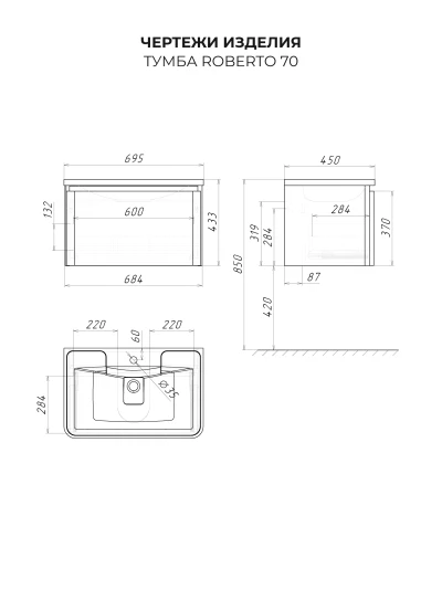 Подвесная тумба с раковиной в ванную из коллекции Roberto - это сочетание современной стилистики и богатого функционала. Тумба для ванны изготовлена из прочного МДФ, поэтому выдерживает высокие эксплуатационные нагрузк и обеспечивает дополнительную защиту тумбы с раковиной от влаги и перепадов температуры. Качественная фурнитура с доводчиками обеспечивает легкое открывание и плавное закрывание ящиков. Вырез под сифон универсальный, для любого типа. Благодаря своей конструкции тумба обеспечивает удобный доступ к раковине и позволяет скрыть коммуникации. Тумба с раковиной в ванную оснащена удобным ящиком для хранения, что позволяет разместить всё необходимое под рукой. Ручки интегрированы в фасад, что исключает возможность случайного удара о фурнитуру. Для точного выбора тумбы с раковиной в ванную комнату рекомендуем обратиться к схеме замеров, которая находится на фото в карточке товара, размеры изделия могут отличаться +/-1 см в связи со спецификой производства. Тумба для ванной доставляется в предварительно собранном виде, надежно упакована.