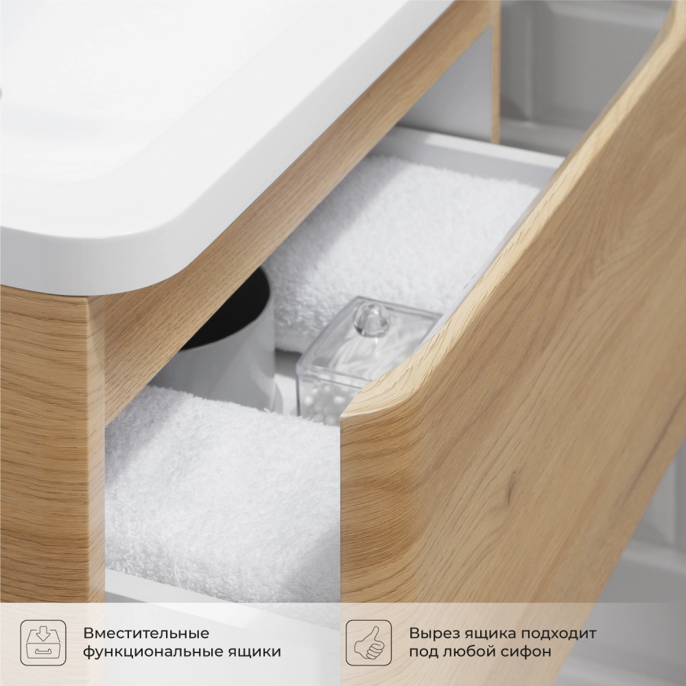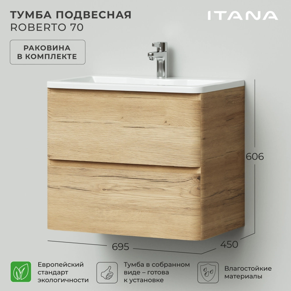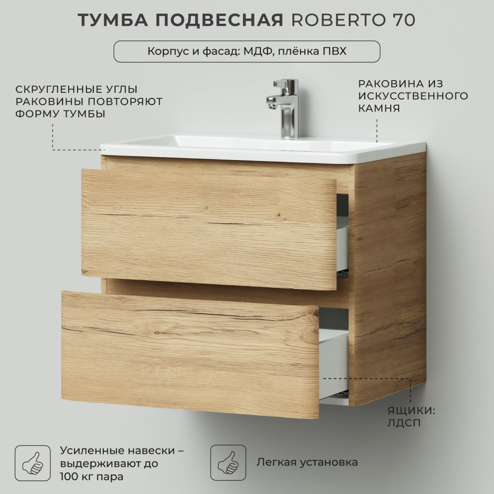 Тумба с раковиной подвесная Итана Roberto 70 с выдвижными ящиками Дуб Мавелла Голд