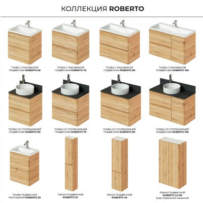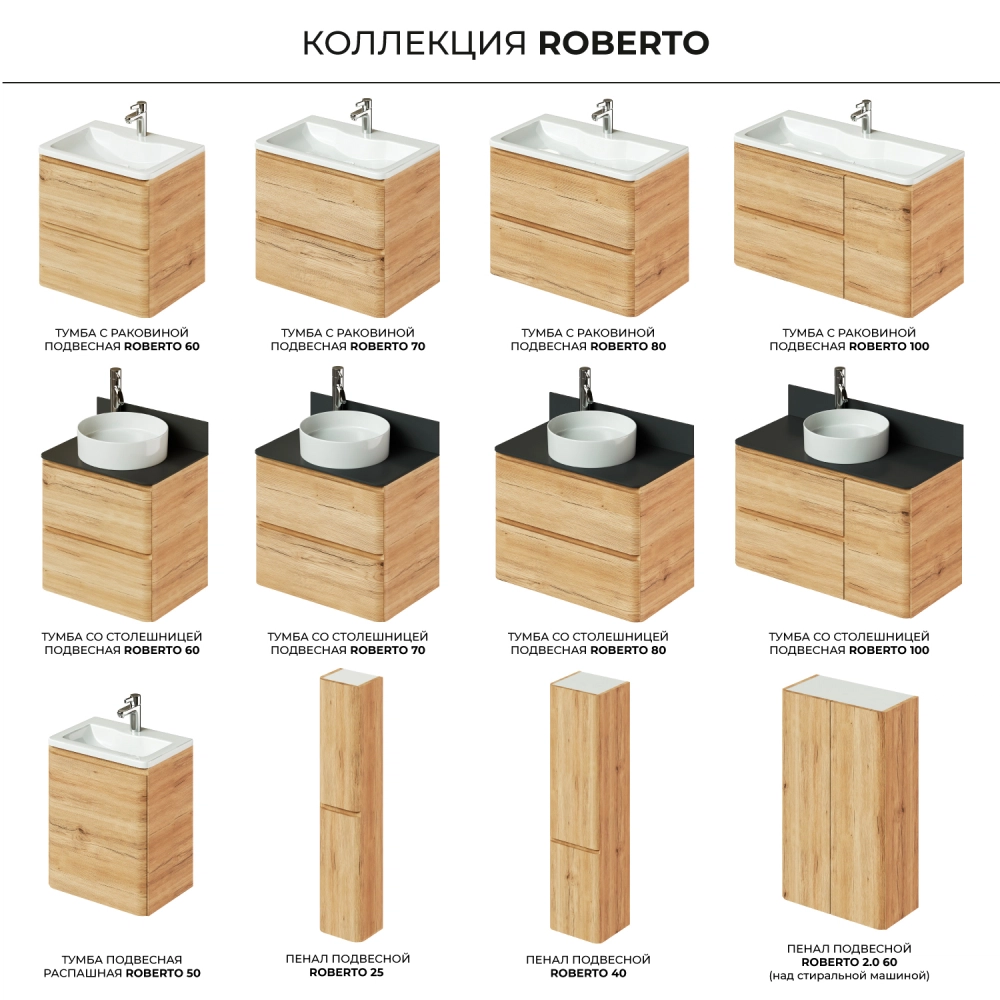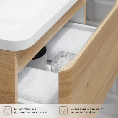Подвесная тумба с раковиной в ванную из коллекции Roberto - это сочетание современной стилистики и богатого функционала. Тумба для ванны изготовлена из прочного МДФ, поэтому выдерживает высокие эксплуатационные нагрузк и обеспечивает дополнительную защиту тумбы с раковиной от влаги и перепадов температуры. Качественная фурнитура с доводчиками обеспечивает легкое открывание и плавное закрывание ящиков. Вырез под сифон универсальный, для любого типа. Благодаря своей конструкции тумба обеспечивает удобный доступ к раковине и позволяет скрыть коммуникации. Тумба с раковиной в ванную оснащена удобным ящиком для хранения, что позволяет разместить всё необходимое под рукой. Ручки интегрированы в фасад, что исключает возможность случайного удара о фурнитуру. Для точного выбора тумбы с раковиной в ванную комнату рекомендуем обратиться к схеме замеров, которая находится на фото в карточке товара, размеры изделия могут отличаться +/-1 см в связи со спецификой производства. Тумба для ванной доставляется в предварительно собранном виде, надежно упакована.