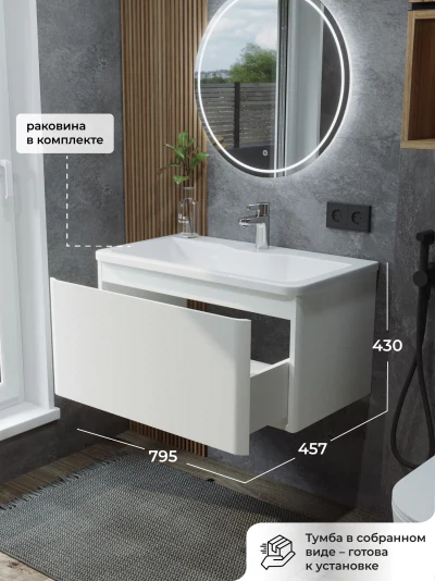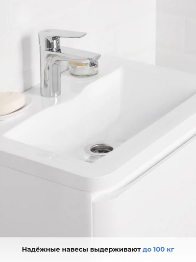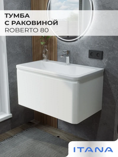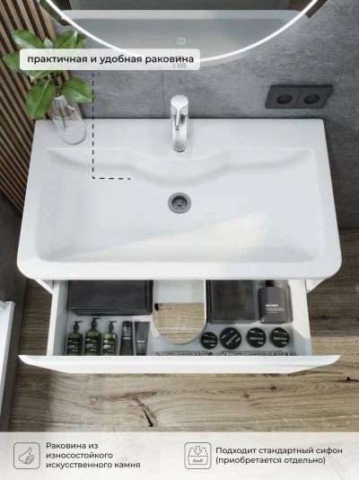 Тумба с раковиной подвесная Итана Roberto 80 с выдвижным ящиком Белый глянец