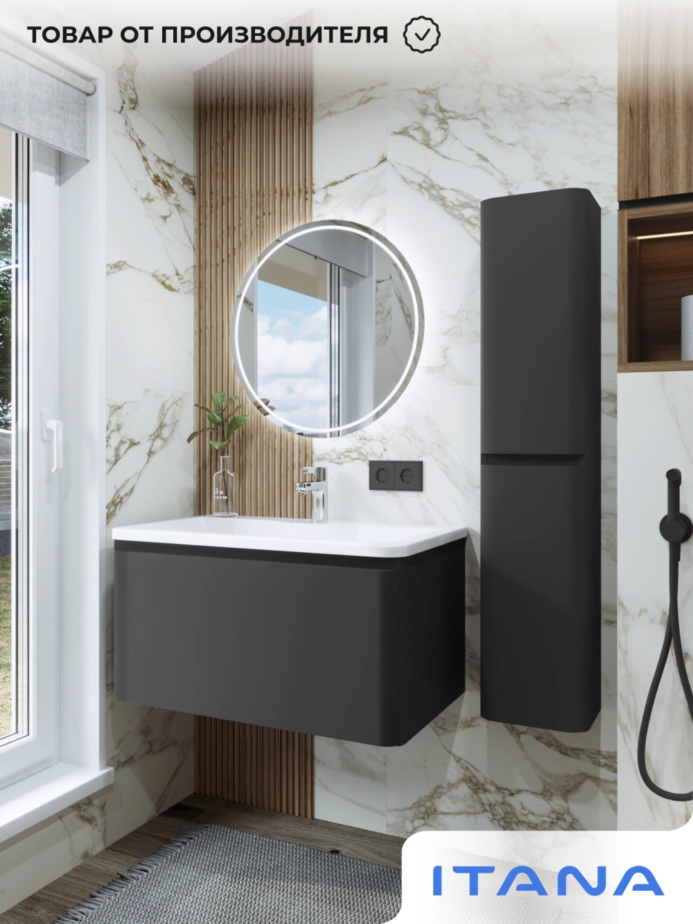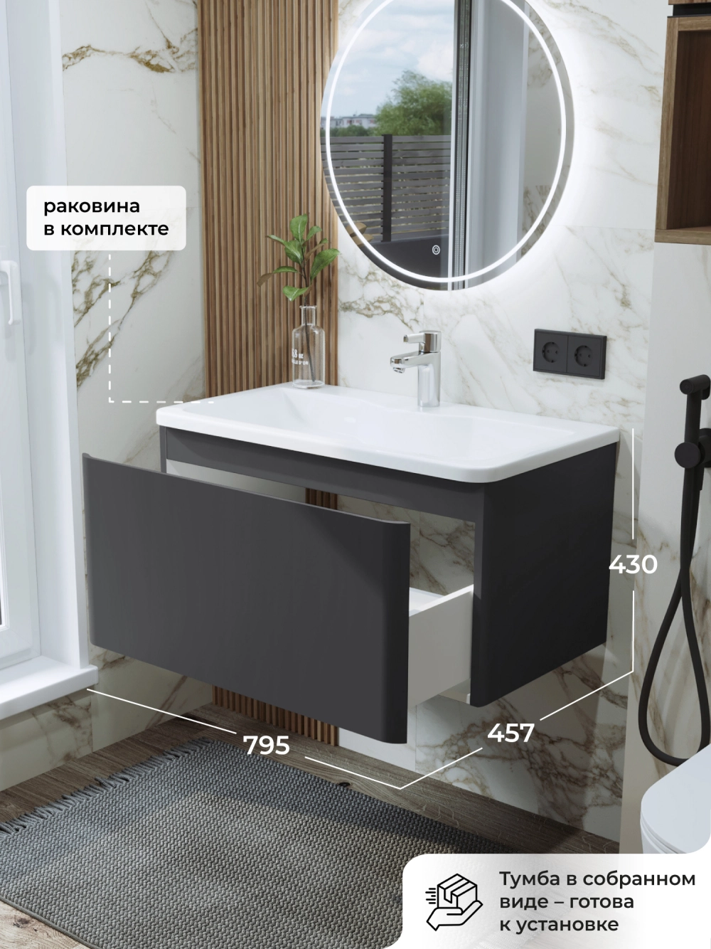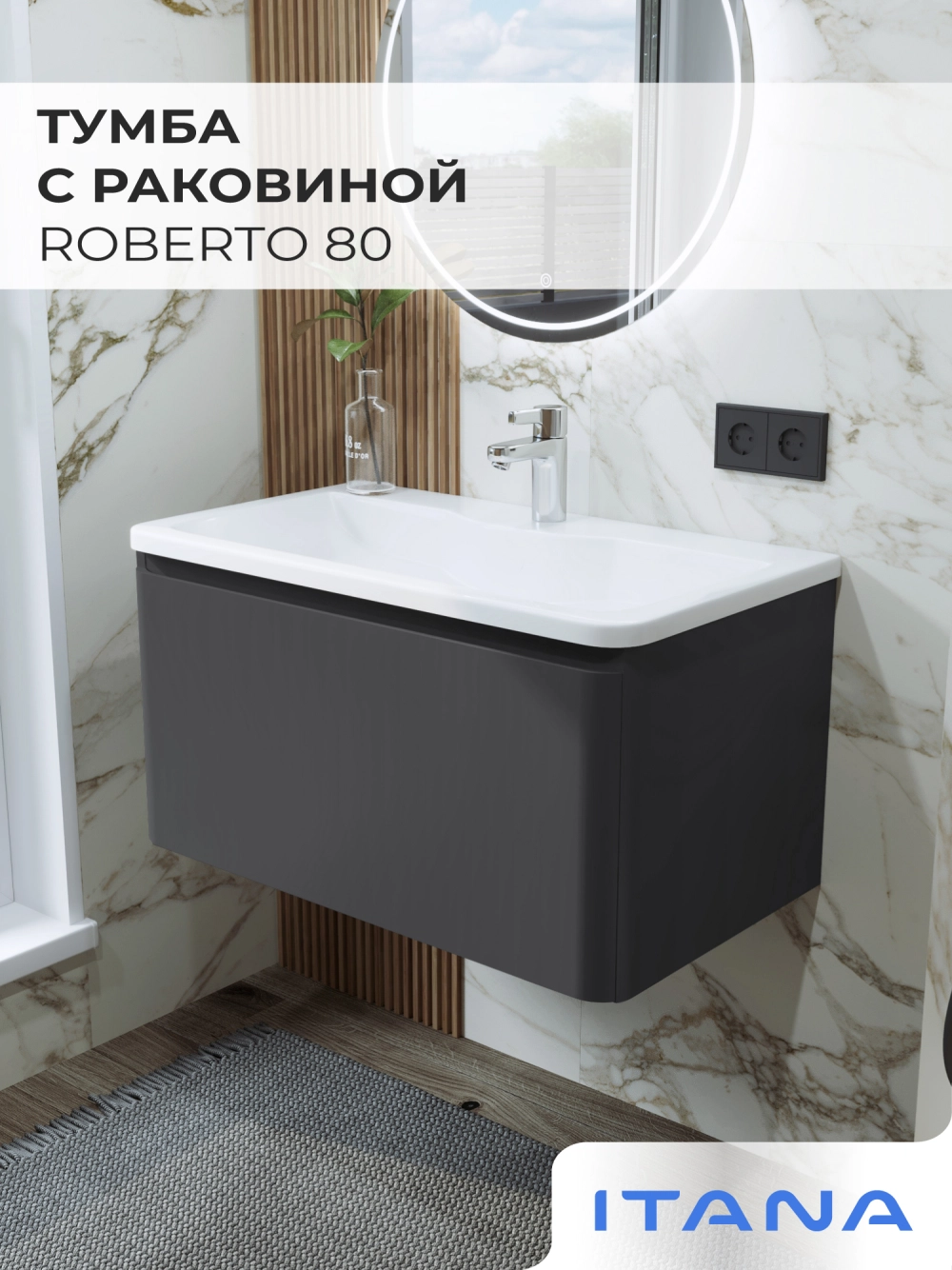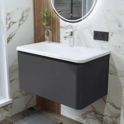 Тумба с раковиной подвесная Итана Roberto 80 с выдвижным ящиком Графит