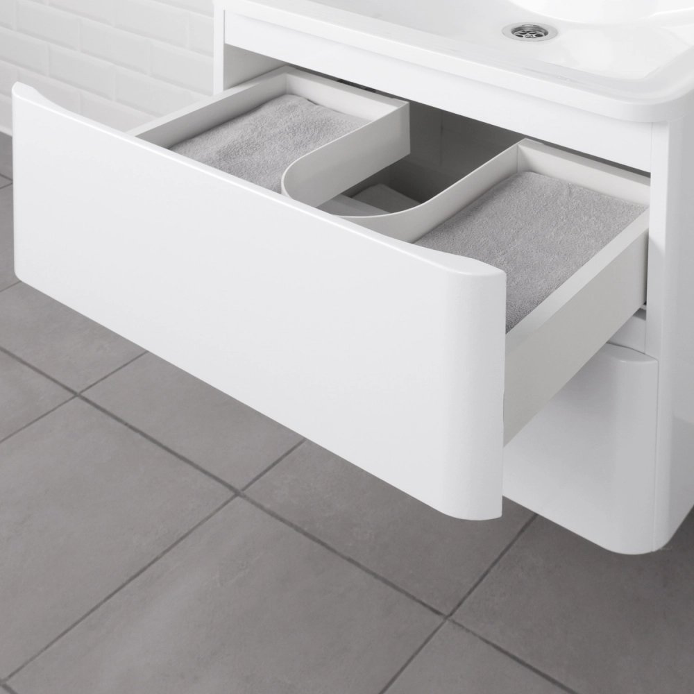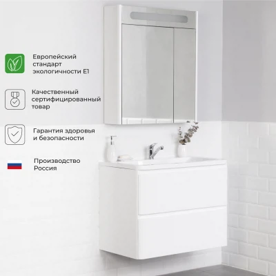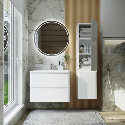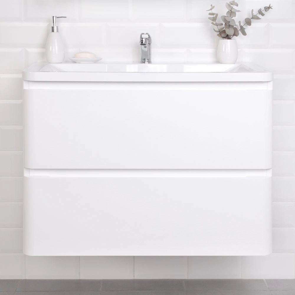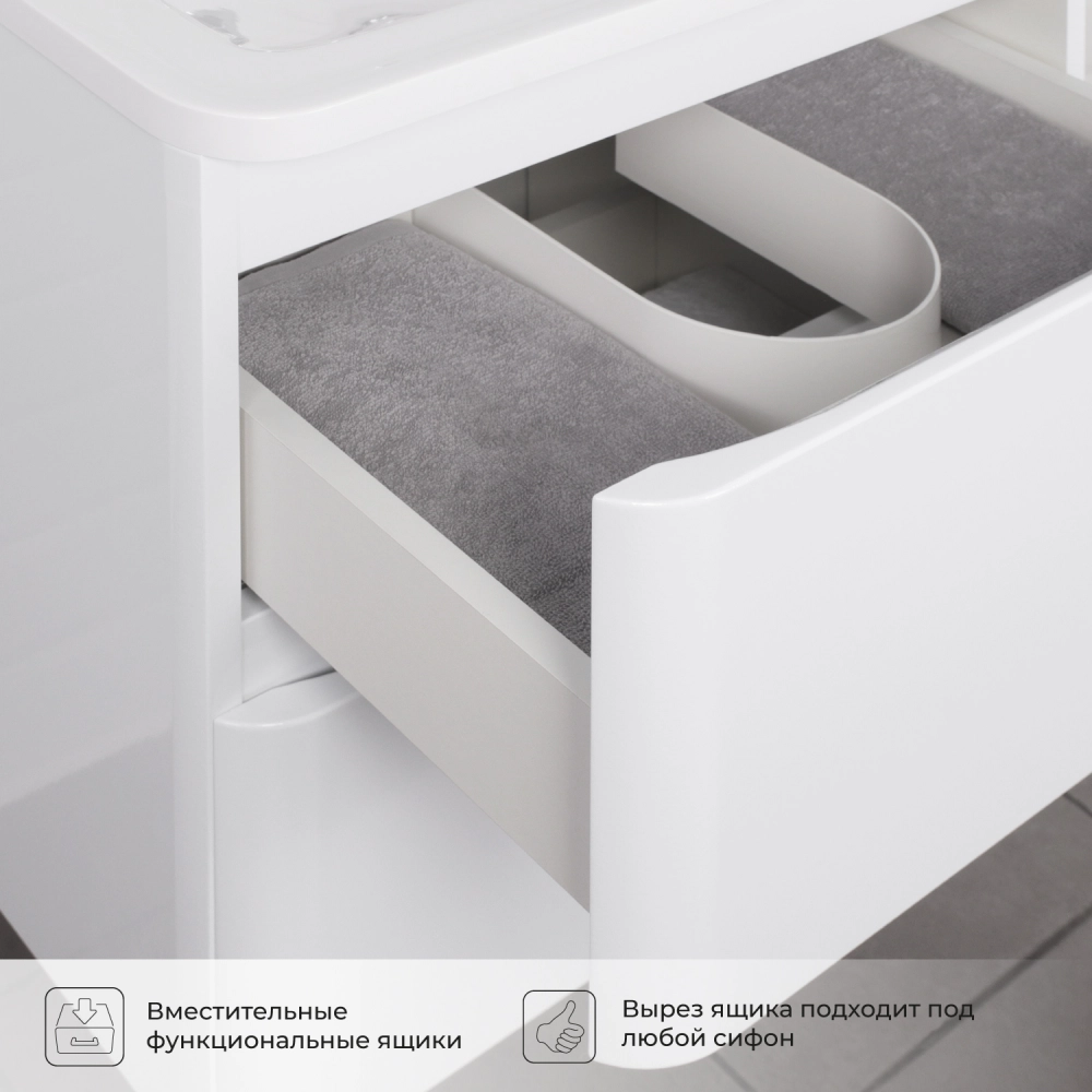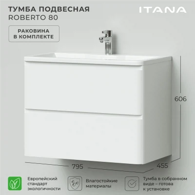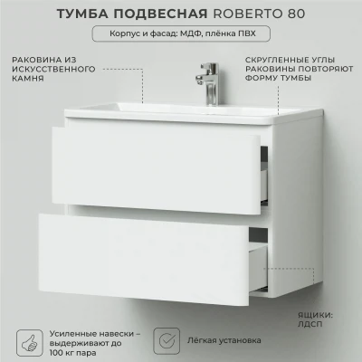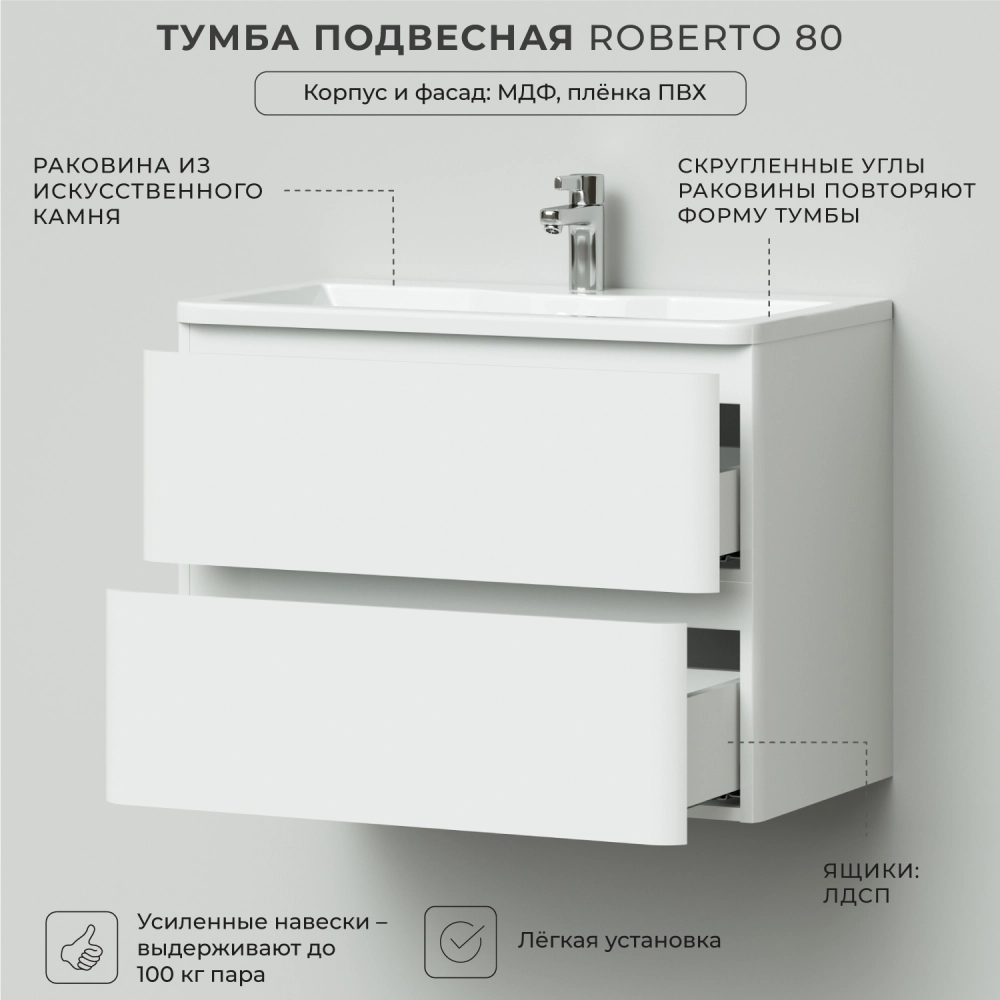 Тумба с раковиной подвесная Итана Roberto 80 с выдвижными ящиками Белый Глянец