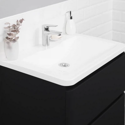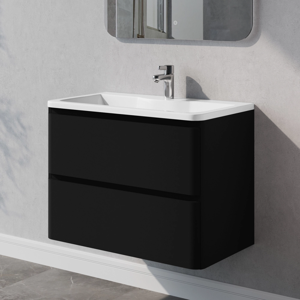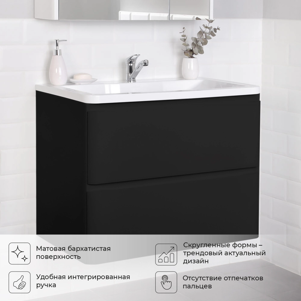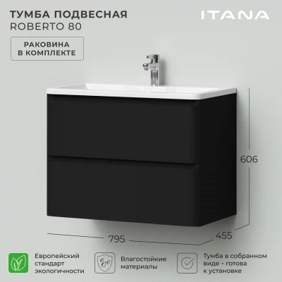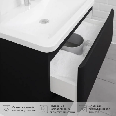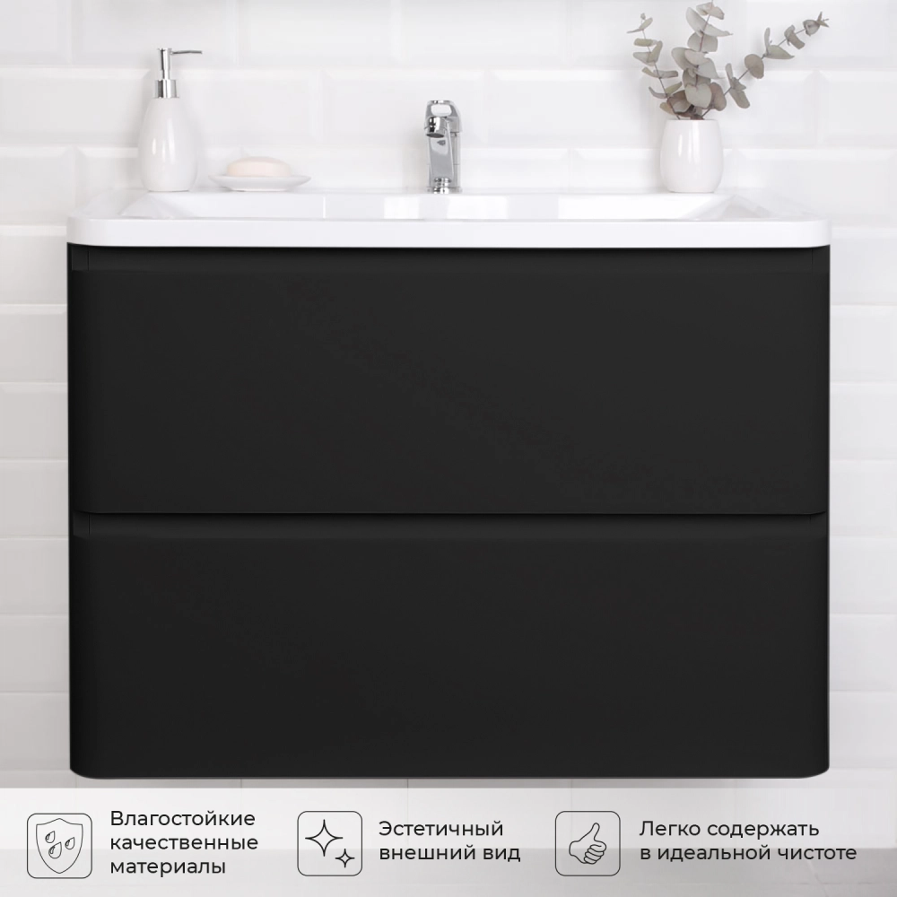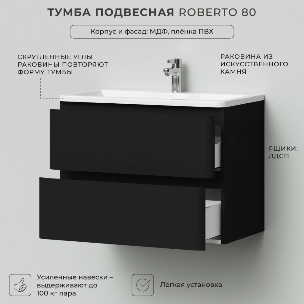 Тумба с раковиной подвесная Итана Roberto 80 с выдвижными ящиками Черный софт