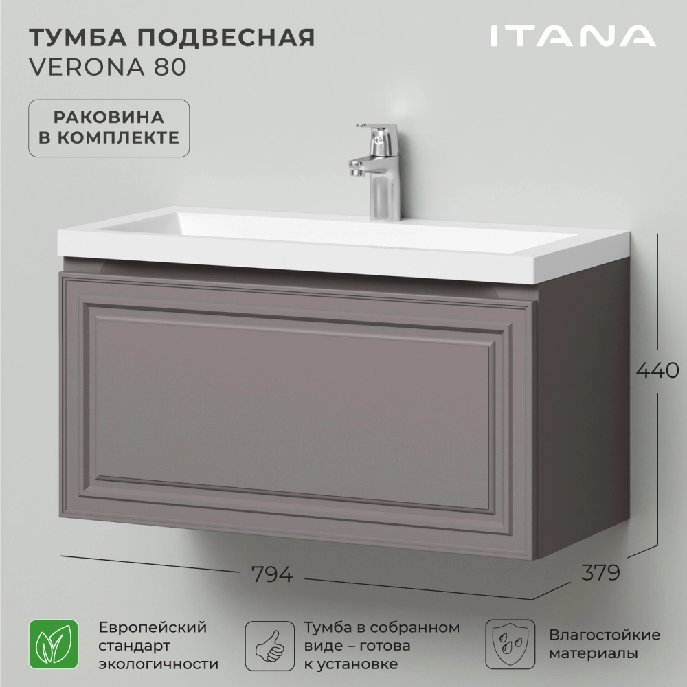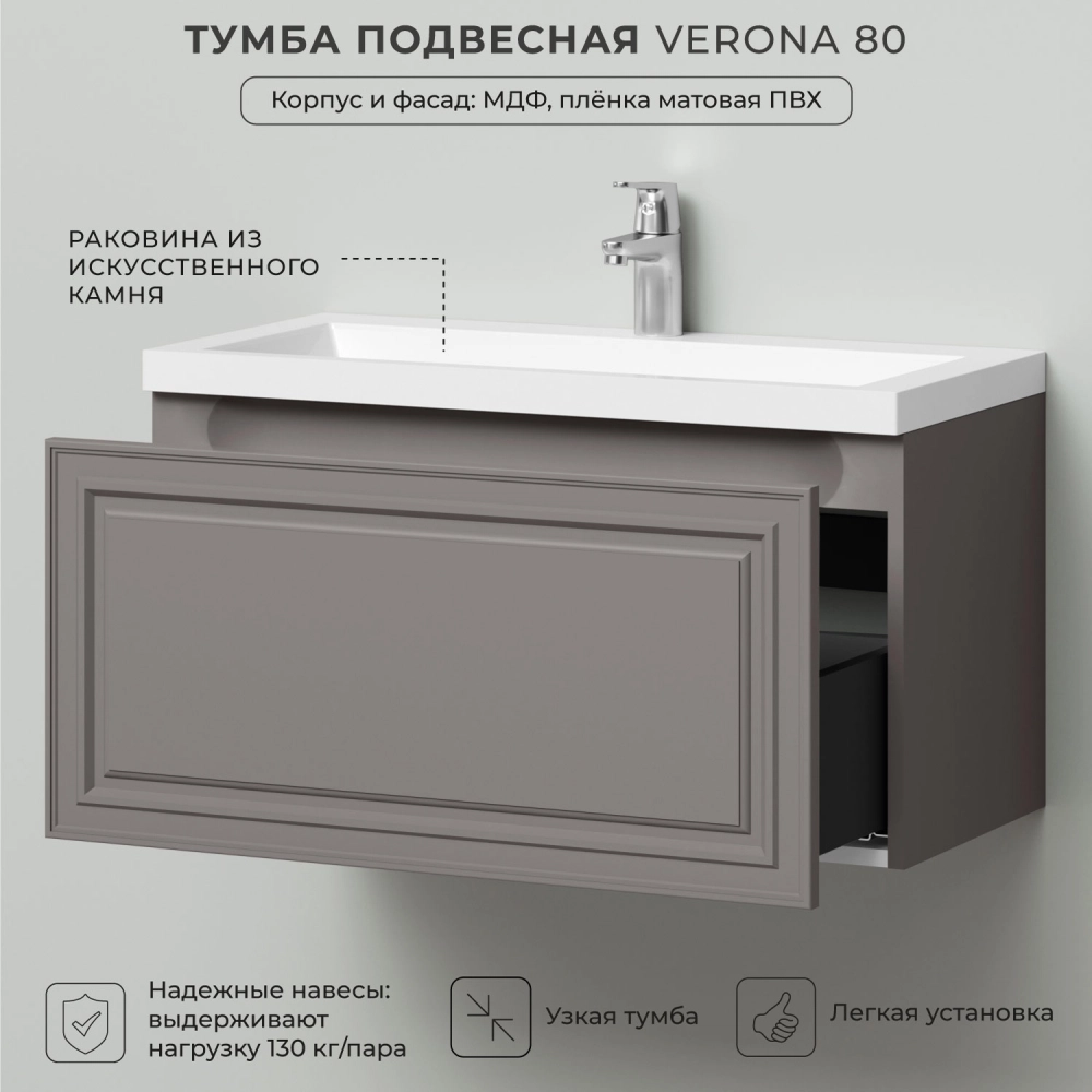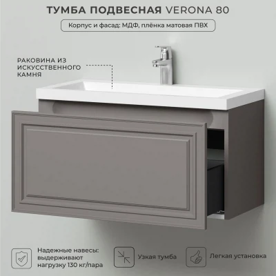Тумба с раковиной подвесная Итана Verona 80 с выдвижным ящиком Амаретти