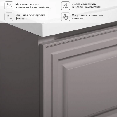 Подвесная тумба с раковиной из коллекции Verona станет настоящим украшением ванной комнаты в современном скандинавском стиле. Навесной способ установки тумбы в ванную дает возможность не только визуально увеличить пространство, но и обеспечивает быстрый и удобный доступ для уборки. Размеры подвесной тумбы с раковиной 794х379х440 - идеальный выбор для ванной комнаты или туалета. Тумба для ванны изготовлена из прочного МДФ, поэтому выдерживает высокие эксплуатационные нагрузки. Корпус и фасады тумбы для ванной покрыты матовой пленкой, что обеспечивает дополнительную защиту тумбы с раковиной от влаги и перепадов температуры. Качественная фурнитура с доводчиками обеспечивает легкое открывание и плавное закрывание ящика. Вырез под сифон универсальный, для любого типа. Благодаря своей конструкции тумба в ванную обеспечивает удобный доступ к раковине и позволяет скрыть коммуникации. Тумба с раковиной в ванную оснащена удобным ящиком для хранения, что позволяет разместить всё необходимое под рукой. Ручки интегрированы в фасад дверки шкафчика, что исключает возможность случайного удара о фурнитуру. Для точного выбора подвесной тумбы с раковиной в ванную комнату рекомендуем обратиться к схеме замеров, которая находится на третьем фото в карточке товара, размеры изделия могут отличаться +/-1 см в связи со спецификой производства. Тумба для ванной доставляется в предварительно собранном виде, надежно упакована.