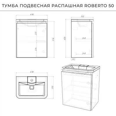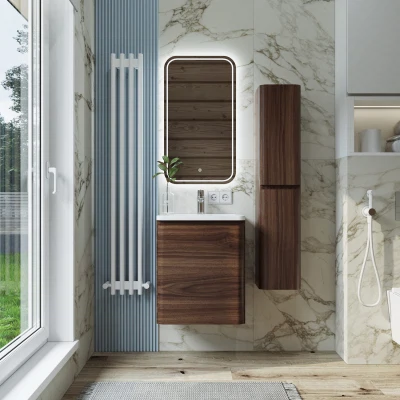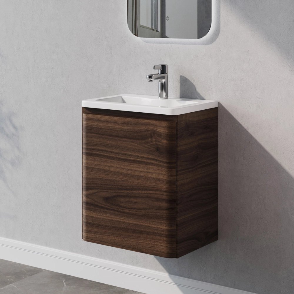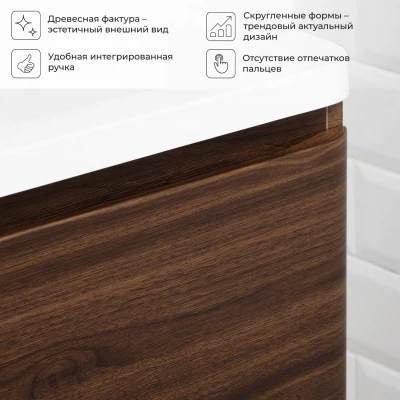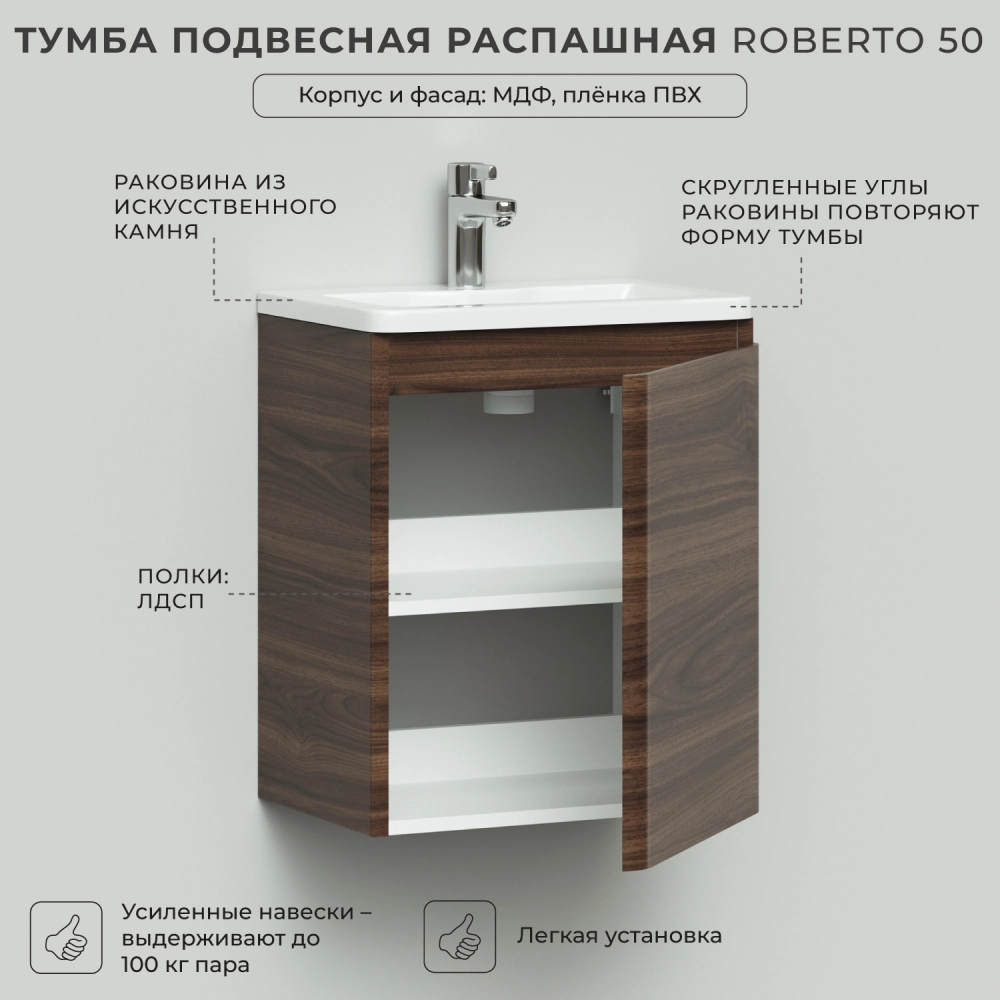 Тумба с раковиной подвесная распашная Итана Roberto 50 с распашной дверцей Орех Пекан шоколад стронг