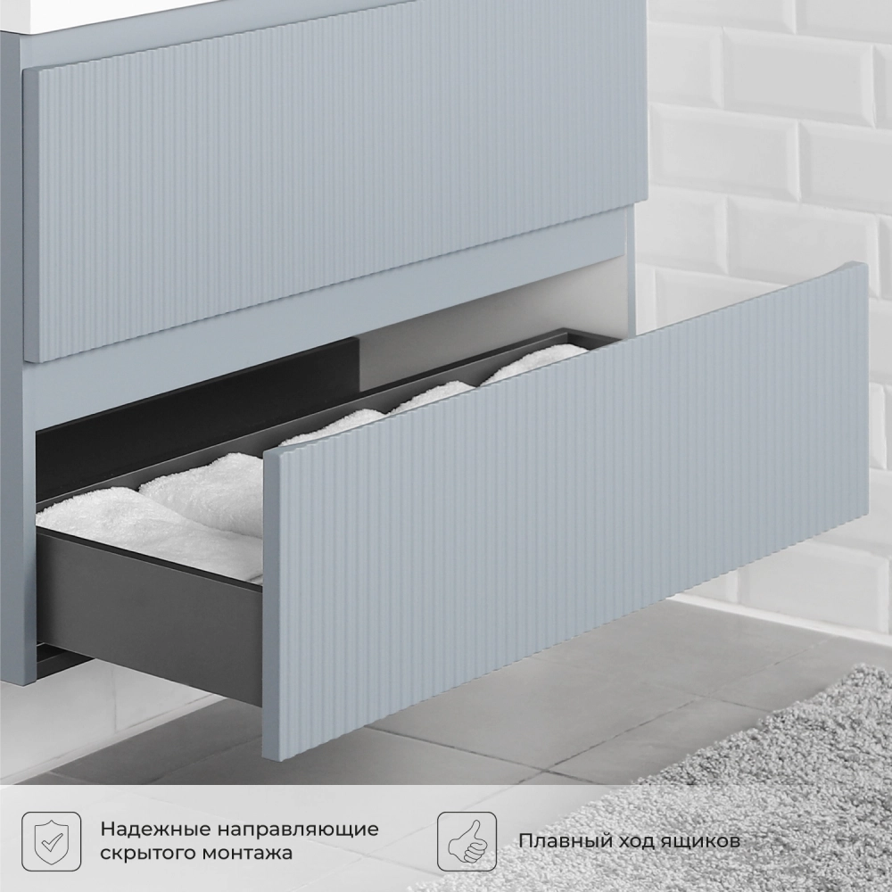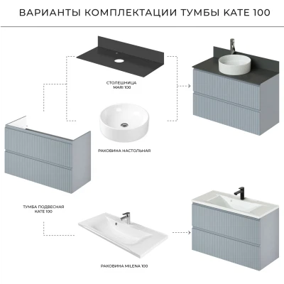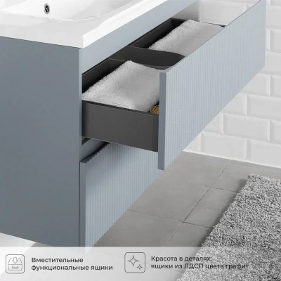 Подвесная тумба со столешницей из коллекции Kate станет настоящим украшением ванной комнаты в современном стиле. Навесной способ установки тумбы в ванную дает возможность не только визуально увеличить пространство, но и обеспечивает быстрый и удобный доступ для уборки. Размеры подвесной тумбы со столешницей 1002*445*610 - идеальный выбор для ванной комнаты или туалета. Тумба для ванны изготовлена из МДФ и покрыта ПВХ пленкой, поэтому выдерживает высокие эксплуатационные нагрузки. Качественная фурнитура с доводчиками обеспечивает легкое открывание и плавное закрывание ящиков. Вырез под сифон универсальный, для любого типа. Благодаря своей конструкции тумба обеспечивает удобный доступ к раковине и позволяет скрыть коммуникации. Тумба со столешницей в ванную оснащена двумя удобными ящиками для хранения, что позволяет разместить всё необходимое под рукой. Для точного выбора тумбы со столешницей в ванную комнату рекомендуем обратиться к схеме замеров, которая находится на фото в карточке товара, размеры изделия могут отличаться +/-1 см в связи со спецификой производства. Подвесная тумба со столешницей для ванной доставляется в предварительно собранном виде, надежно упакована.