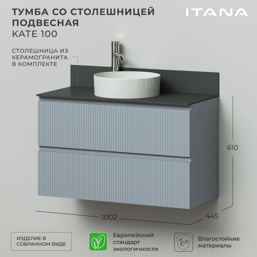 Тумба со столешницей подвесная Итана Kate 100 с выдвижными ящиками Green wood