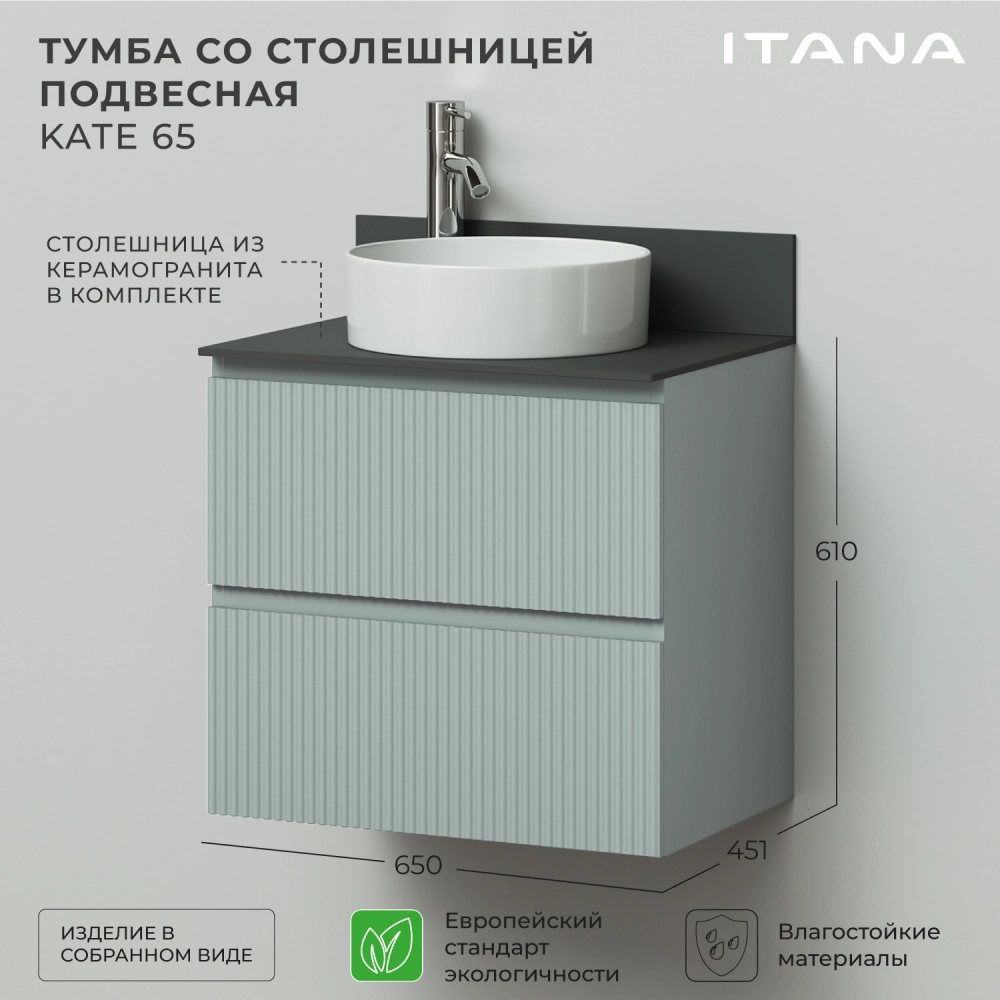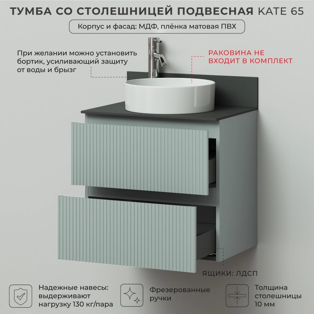 Тумба со столешницей подвесная Итана Kate 65 с выдвижными ящиками Токио