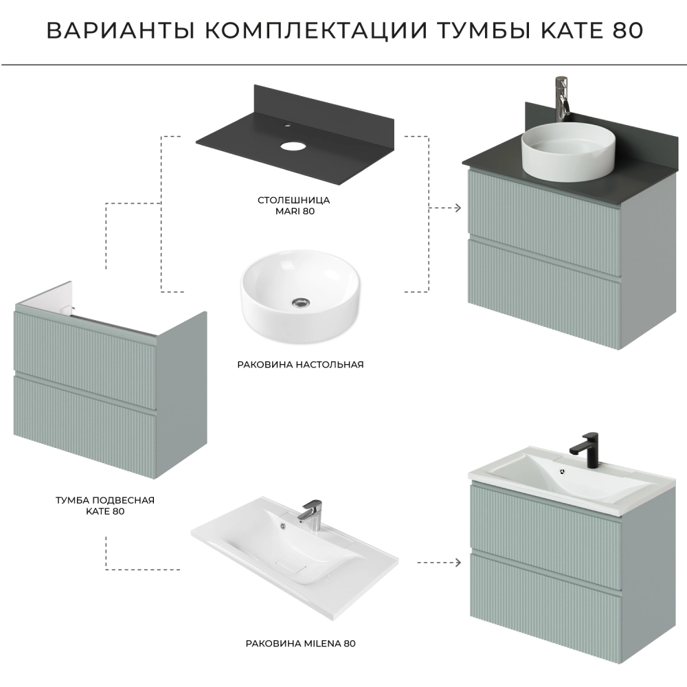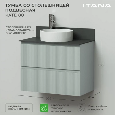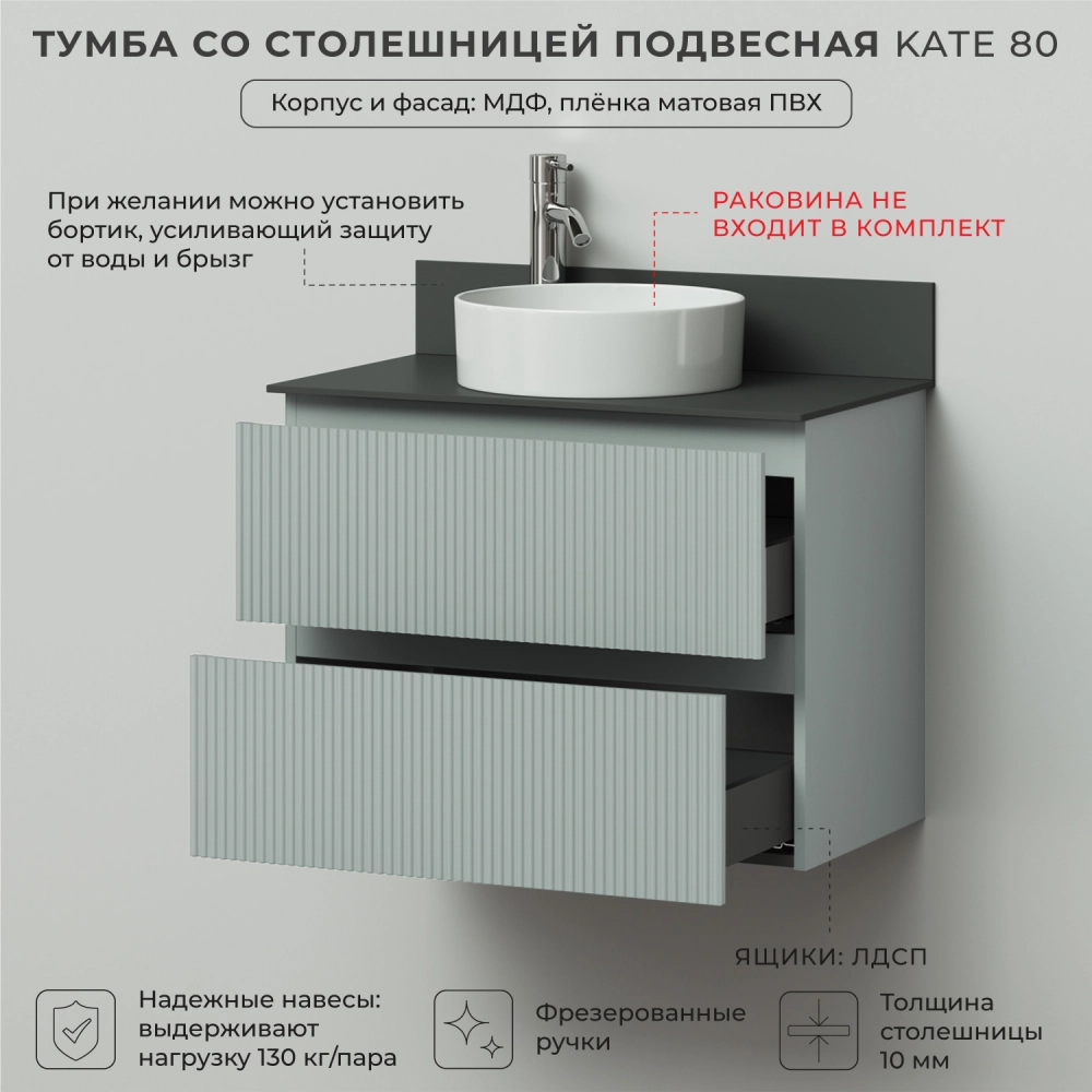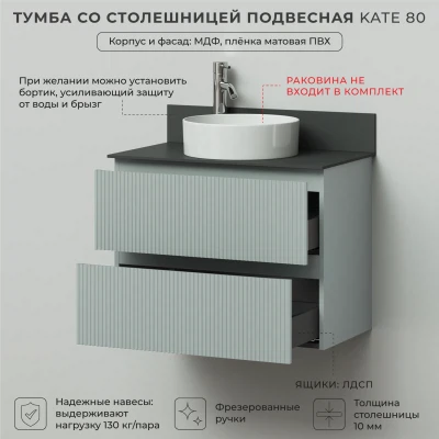 Тумба со столешницей подвесная Итана Kate 80 с выдвижными ящиками Токио
