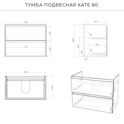 Подвесная тумба со столешницей из коллекции Kate станет настоящим украшением ванной комнаты в современном стиле. Навесной способ установки тумбы в ванную дает возможность не только визуально увеличить пространство, но и обеспечивает быстрый и удобный доступ для уборки. Размеры подвесной тумбы со столешницей 805*454*610 - идеальный выбор для ванной комнаты или туалета. Тумба для ванны изготовлена из МДФ и покрыта ПВХ пленкой, поэтому выдерживает высокие эксплуатационные нагрузки. Качественная фурнитура с доводчиками обеспечивает легкое открывание и плавное закрывание ящиков. Вырез под сифон универсальный, для любого типа. Благодаря своей конструкции тумба обеспечивает удобный доступ к раковине и позволяет скрыть коммуникации. Тумба со столешницей в ванную оснащена двумя удобными ящиками для хранения, что позволяет разместить всё необходимое под рукой. Для точного выбора тумбы со столешницейв ванную комнату рекомендуем обратиться к схеме замеров, которая находится на фото в карточке товара, размеры изделия могут отличаться +/-1 см в связи со спецификой производства. Подвесная тумба со столешницей доставляется в предварительно собранном виде, надежно упакована.