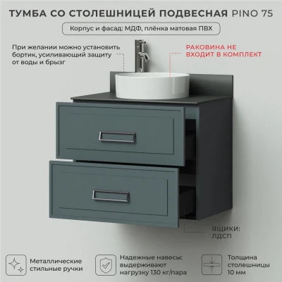 Тумба со столешницей подвесная Итана Pino 75 с выдвижными ящиками Веллюто Авокадо