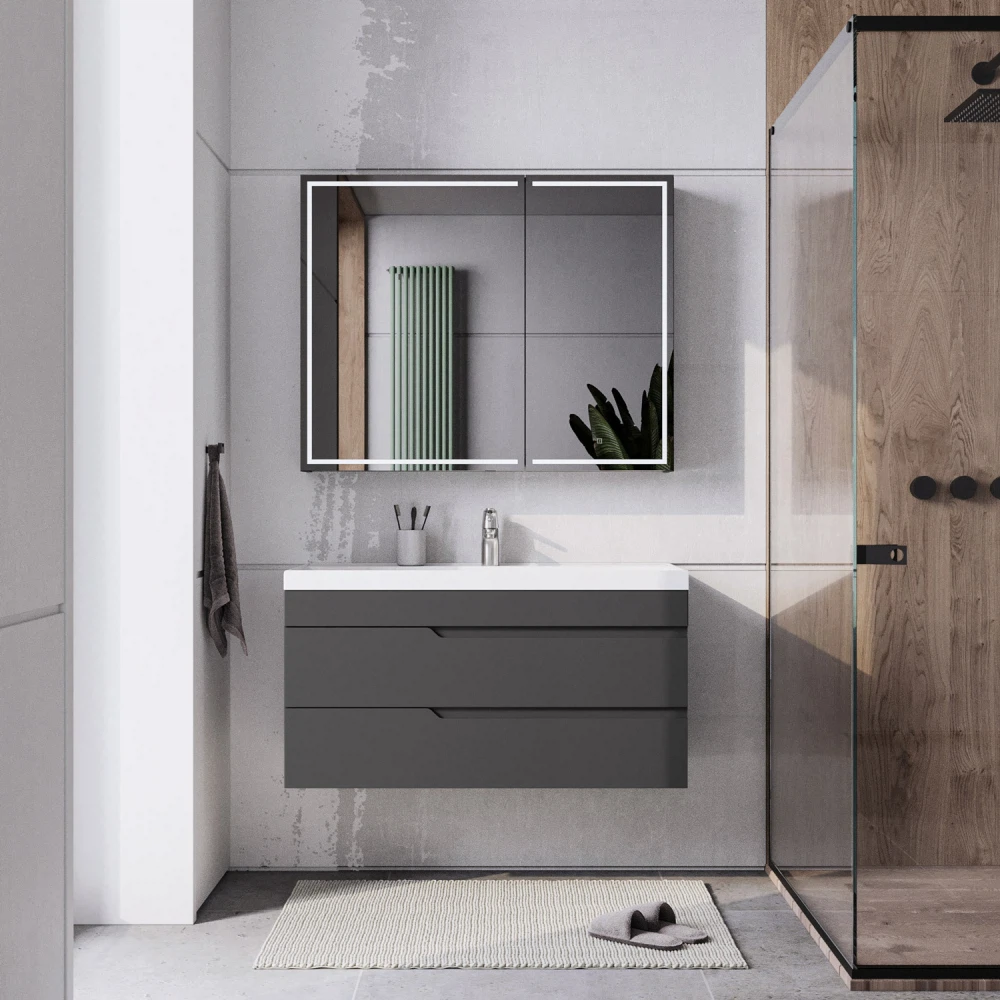 Зеркальный шкаф с подсветкой Итана Luce 100 Серый темный