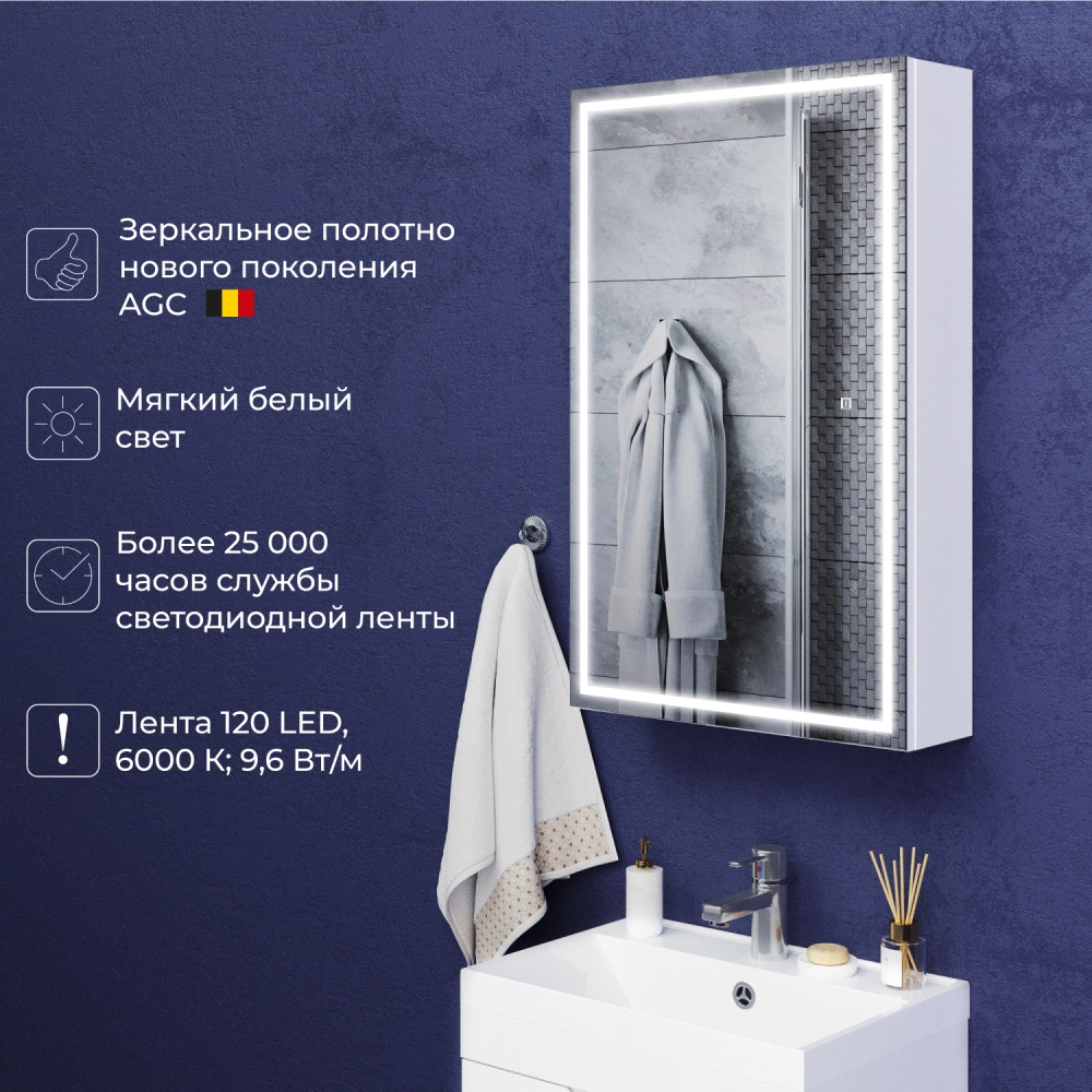 Зеркальный шкаф с подсветкой Итана Luce 50 левое Белый