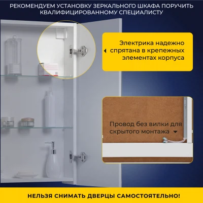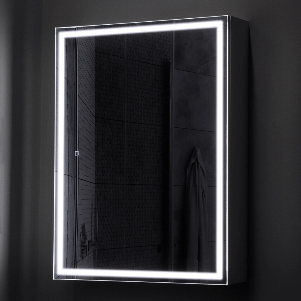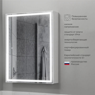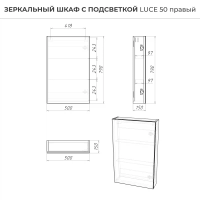 Зеркало-шкаф в ванную с подсветкой Luce 50 - это идеальное решение для вашей ванной комнаты. Этот элегантное и функциональное зеркало в ванную с размерами 500х150х790 мм. легко впишется в интерьер любой ванной комнаты, делая её визуально более просторной и светлой. Зеркало оборудовано современной энергосберегающей подсветкой, которая обеспечивает яркий и равномерный свет, делая ваши утренние процедуры комфортными и удобными. Мягкое освещение идеально подходит для нанесения макияжа, бритья и других гигиенических процедур. Основное преимущество этого зеркального шкафа с подсветкой в ванную - это его продуманная конструкция. Правосторонее открывание обеспечивает удобный доступ ко всем необходимым вещам, а вместительные полки внутри шкафа позволят хранить все необходимые аксессуары и косметические средства в порядке. Зеркальный шкаф Итана Luce 50 изготовлен из высококачественных материалов. Удобная система крепления позволяет быстро и надежно установить шкаф на стену. Для точного выбора шкафа с зеркалоом в ванную комнату рекомендуем обратиться к схеме замеров, которая находится на фото в карточке товара, размеры изделия могут отличаться +/-1 см в связи со спецификой производства. Зеркальный шкаф с подсветкой доставляется в предварительно собранном виде, надежно упакован.