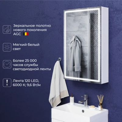 Зеркальный шкаф с подсветкой Итана Luce 50 правое Белый