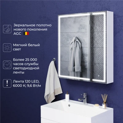 Зеркальный шкаф с подсветкой Итана Luce 70 Белый
