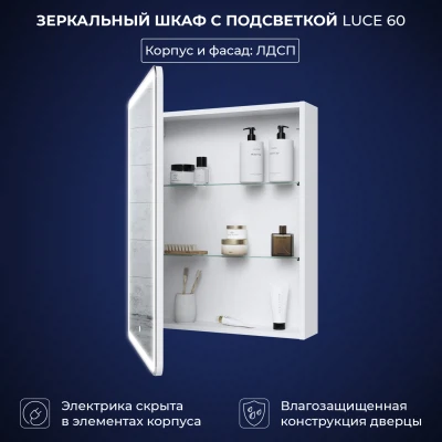 Зеркальный шкаф с подсветкой Итана Miro 60 левое Белый