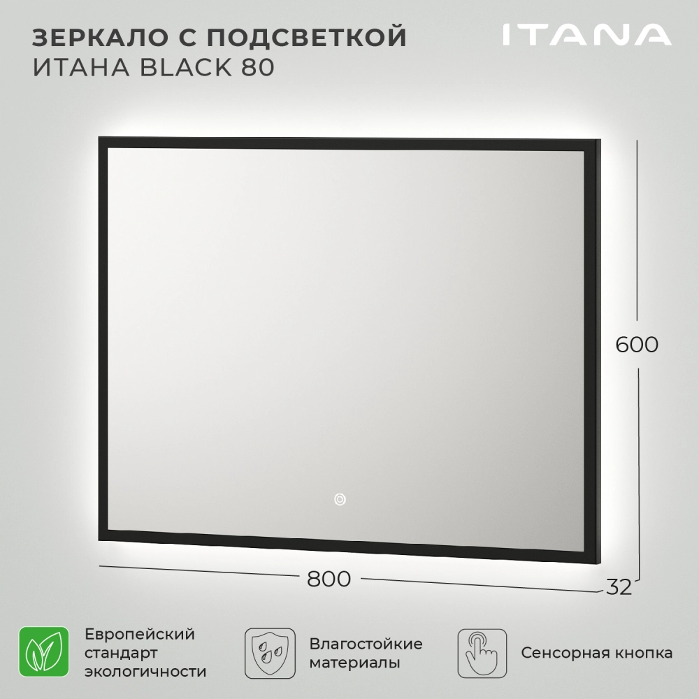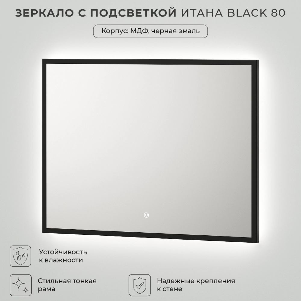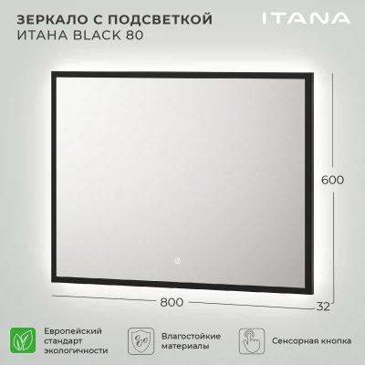 Зеркало с подсветкой Итана Black 80 800х32х600